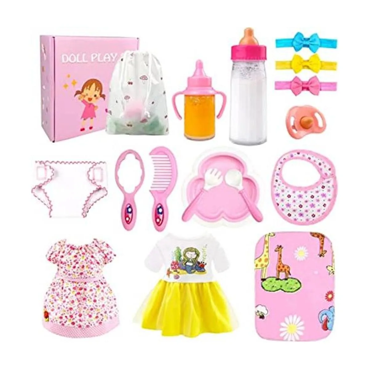 Accesorios para muñecas de bebé, juego de alimentación y cuidado de muñecas con biberones, pañal de muñeca y cambiador, ropa de muñeca para muñecas de 14 a 16 pulgadas, juego de simulación de muñeca de 18 pulgadas para regalo de niñas