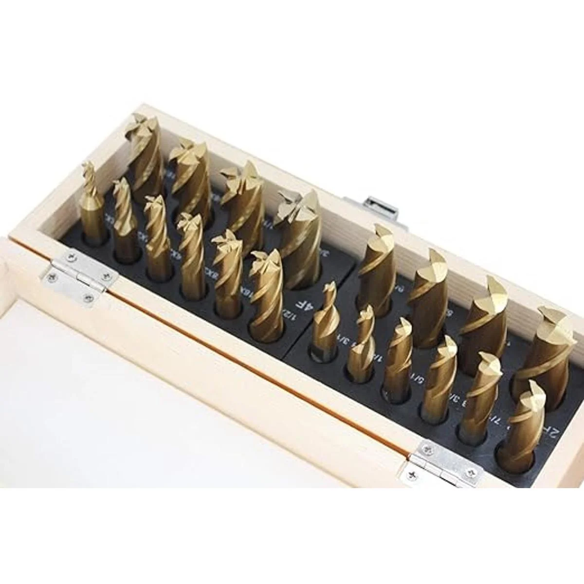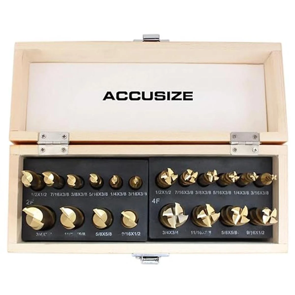 Uno de cada tamaño en 2 y 4 flautas: con vástago de 3/8 pulgadas: 3/16 pulgadas, 1/4 pulgadas, 5/16 pulgadas, 3/8 pulgadas, 7/16 pulgadas