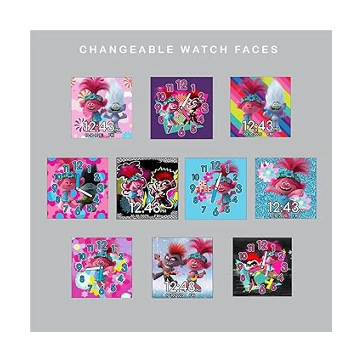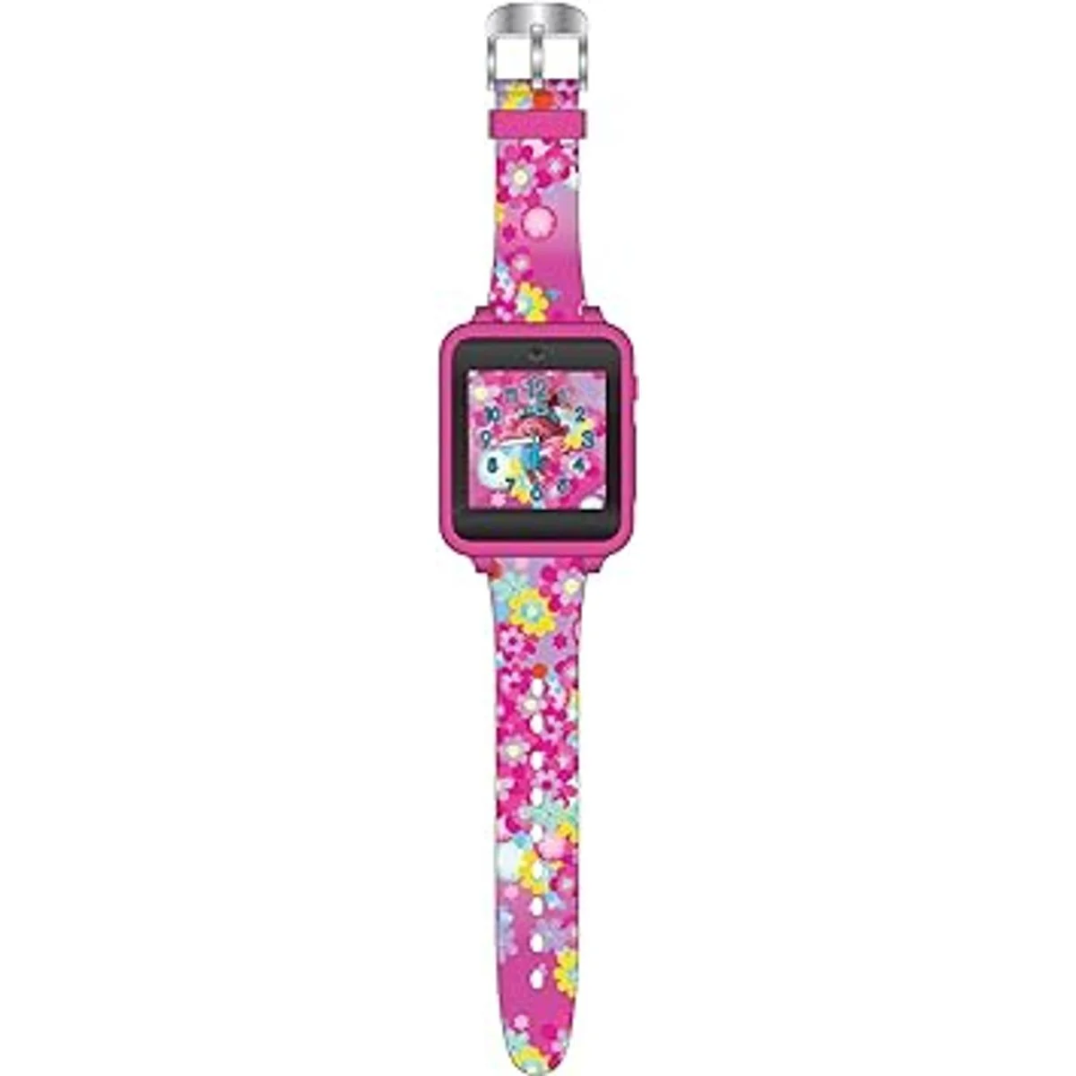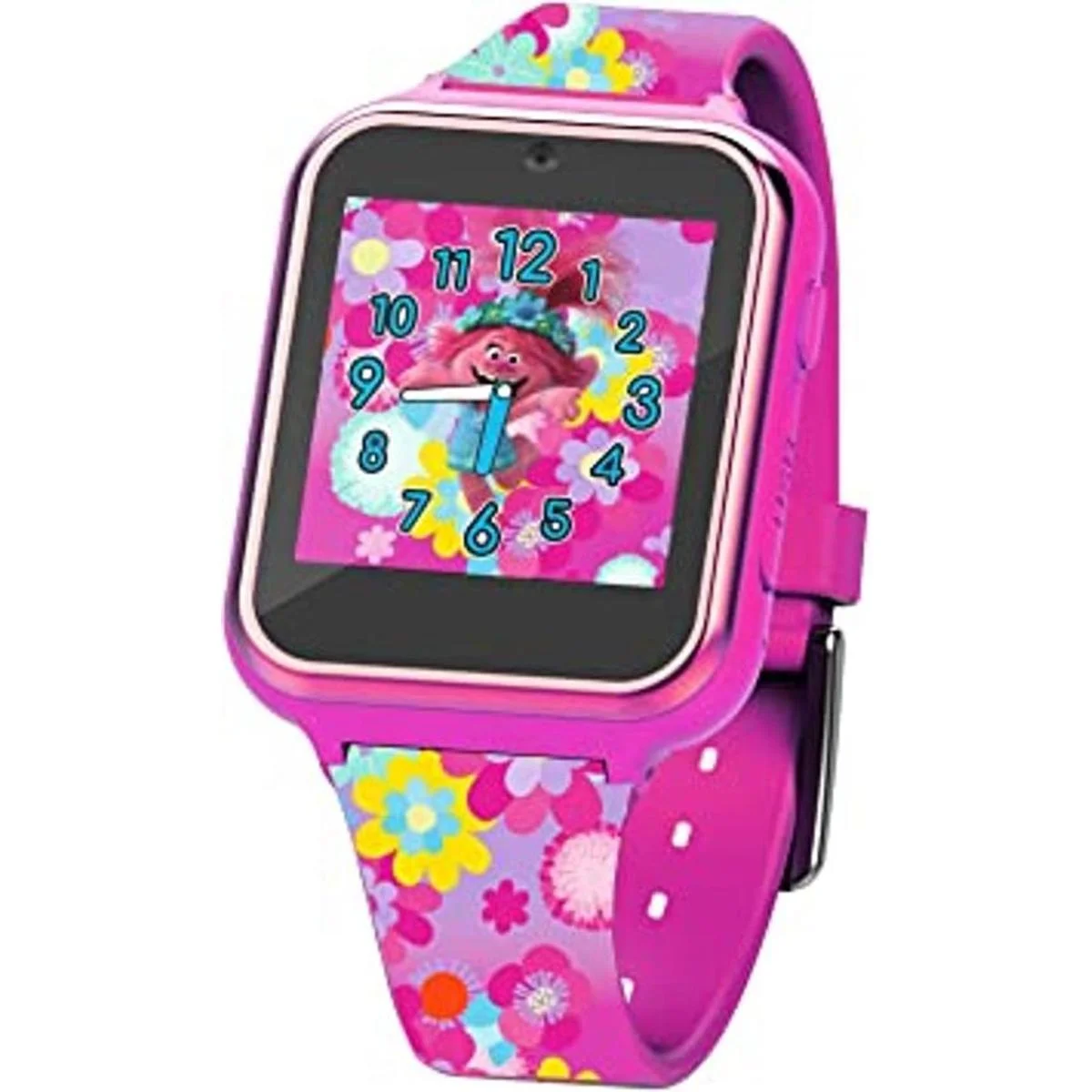 Accutime DreamWorks Trolls Reloj inteligente de aprendizaje educativo con pantalla táctil para niñas, niños, niños pequeños, cámara para selfies, juegos de aprendizaje, alarma, calculadora, podómetro y más, Rosado, 40mm, Moderno
