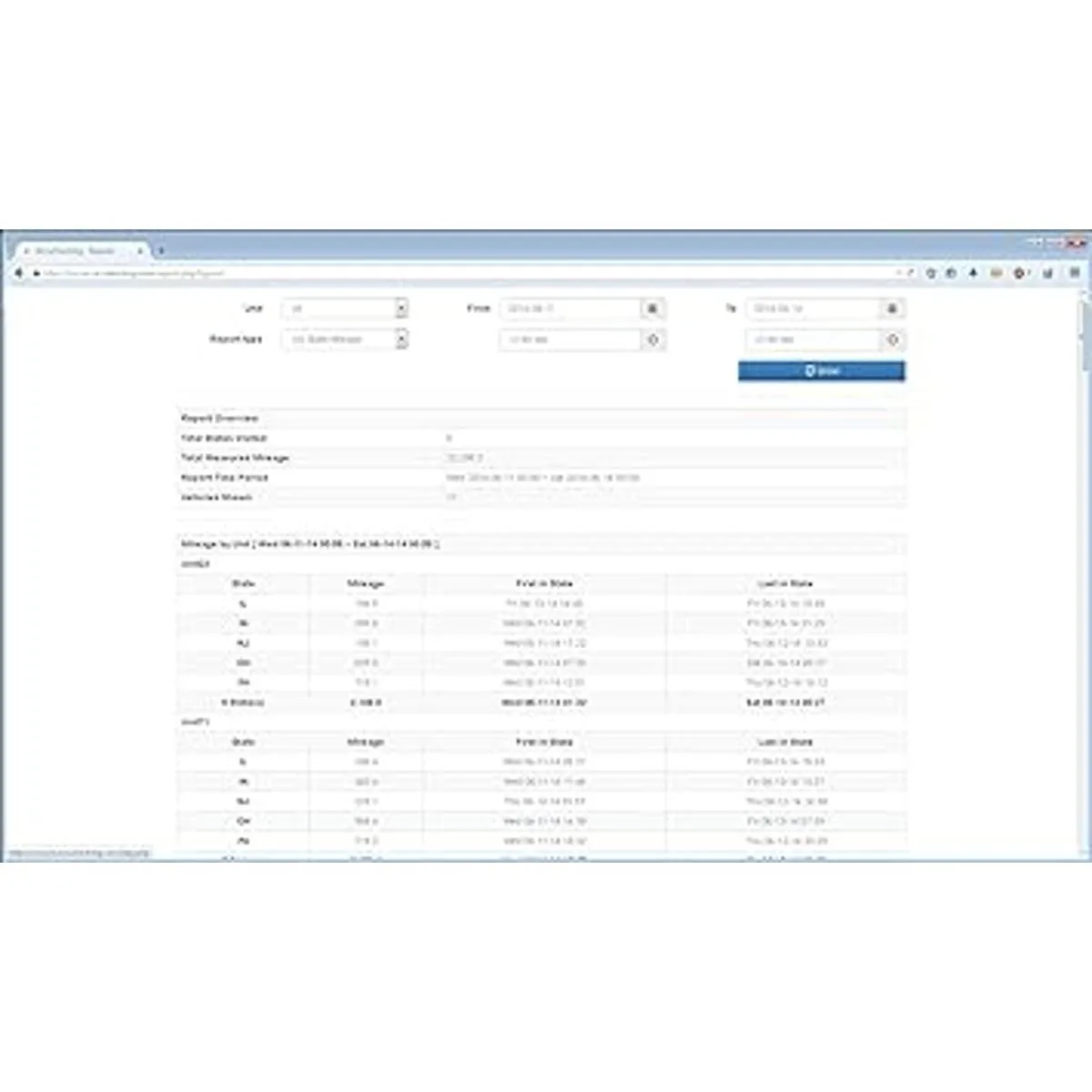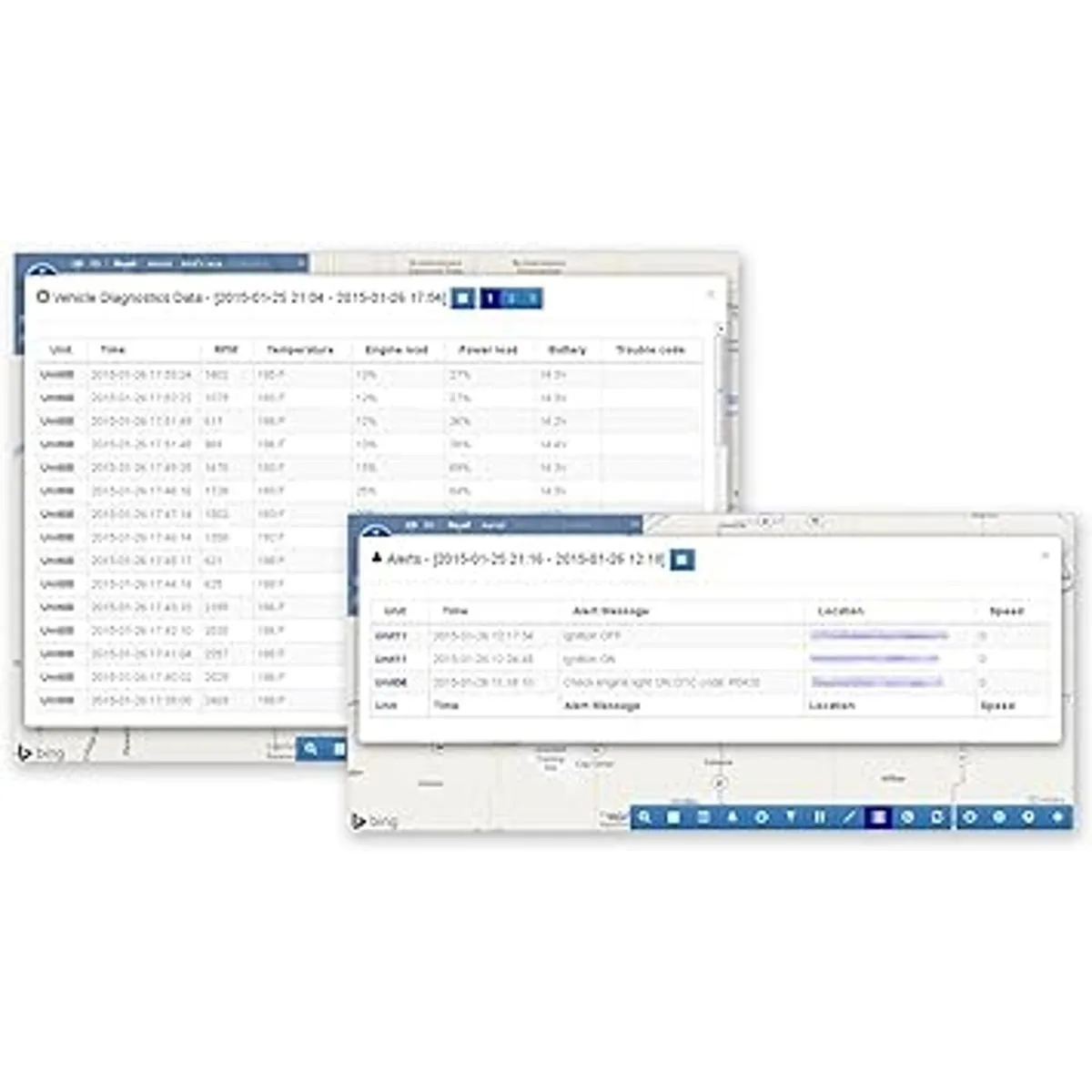 Seguimiento GPS en línea 24×7 en tiempo real en aplicaciones de sitio web o móviles. Datos de diagnóstico del vehículo incluidos. Historial de 2 meses disponible. Geovalla, velocidad, encendido/ACC, desenchufe, frenado agresivo/aceleración/giro, comprueba la luz del motor encendida con código DTC, ralentí del motor, cambio de aceite, temperatura del motor, alerta RPM a través de texto/correo electrónico. Informes de seguimiento detallados paradas, geovalla, velocidad, inactividad, duración de la valla, kilometraje estatal IFTA, estado de mantenimiento del vehículo, ralentí del motor