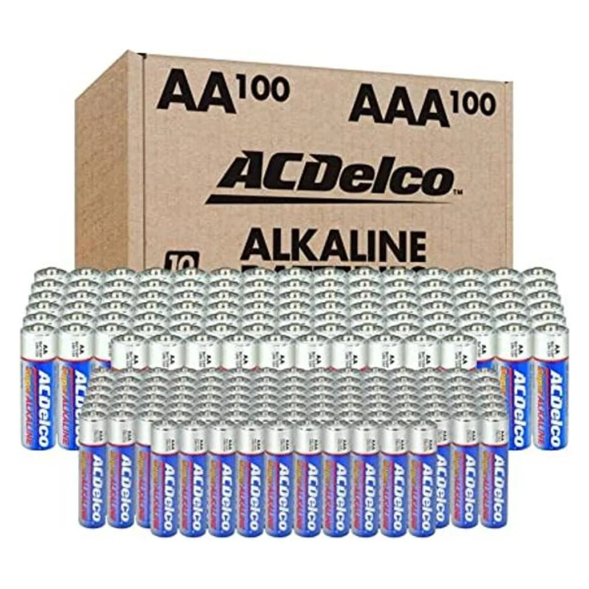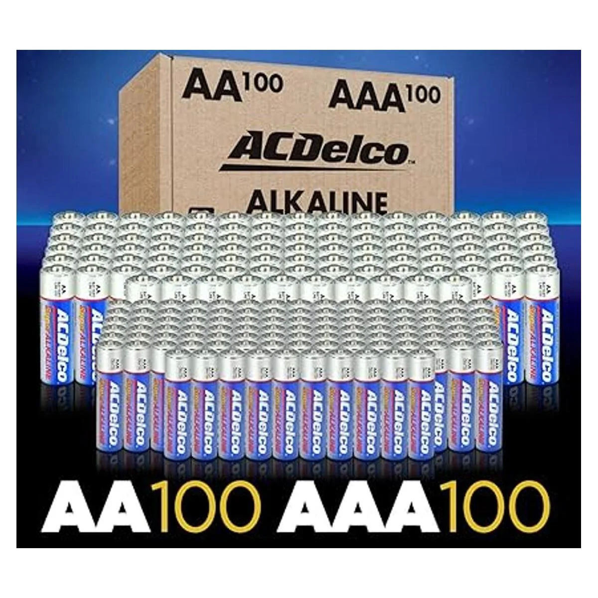 ACDelco AA y AAA paquete combinado de 200 unidades de baterías súper alcalinas, 100 unidades cada una, 10 años de vida útil, embalaje resellable