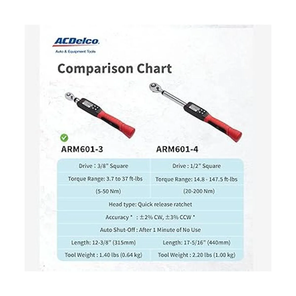 ACDelco, ARM6013, llave dinamométrica digital, 38 pulgadas 237 pieslb