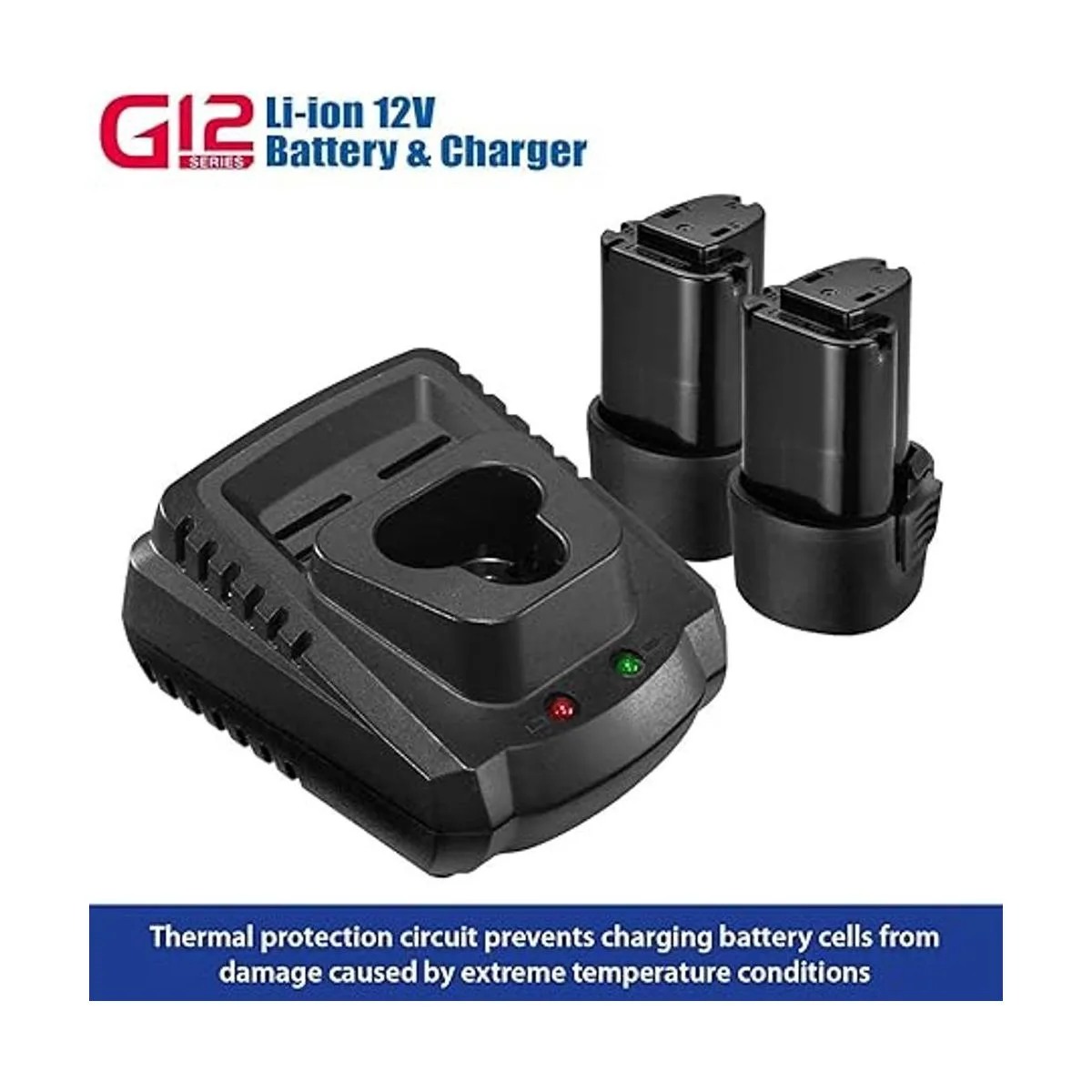 Kit económico: nuestro kit de herramientas de llave de impacto G12 viene con un destornillador de impacto inalámbrico, 2 potentes baterías intercambiables de iones de litio de 12 V y un cargador rápido.
