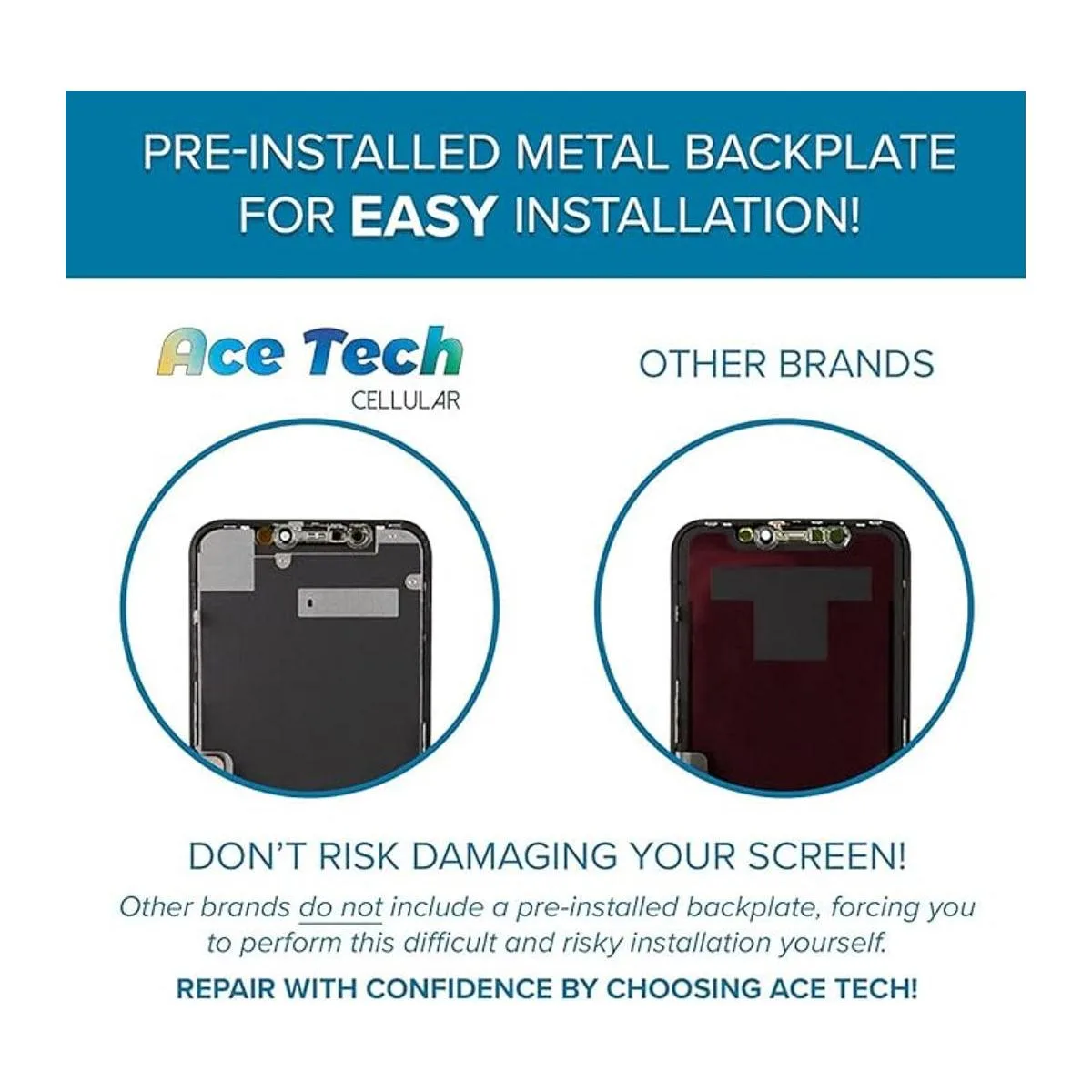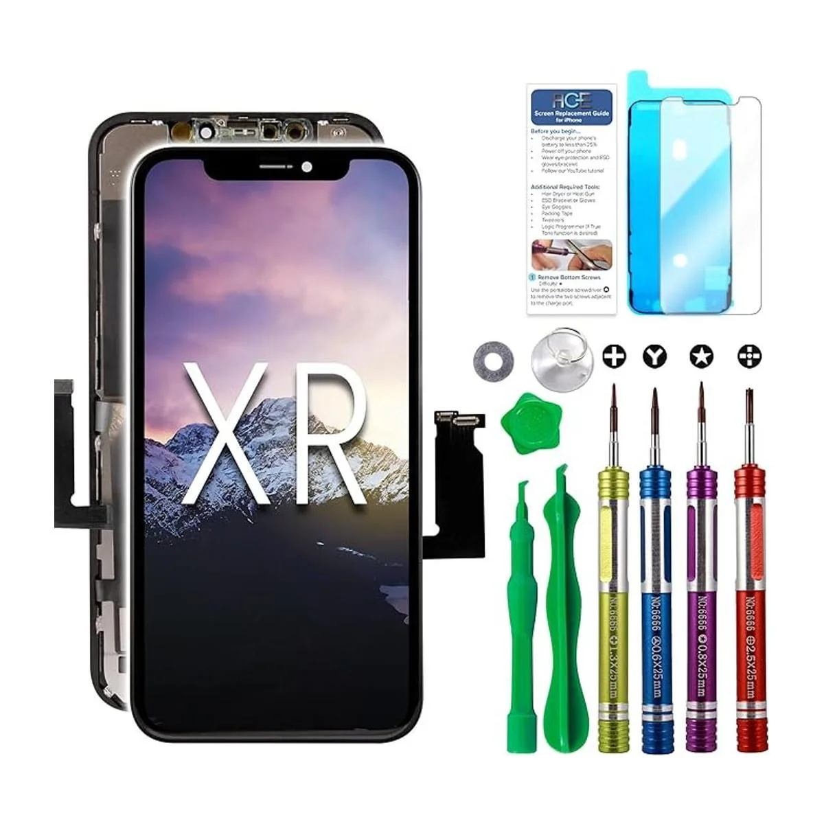 Ace Tech Cellular Reemplazo de pantalla LCD para iPhone XR de 6.1 pulgadas chips en Flex placa trasera de metal preinstalada modelo A1984, A2105, A2106, A2108 montaje del digitalizador de pantalla táctil con kit de reparación