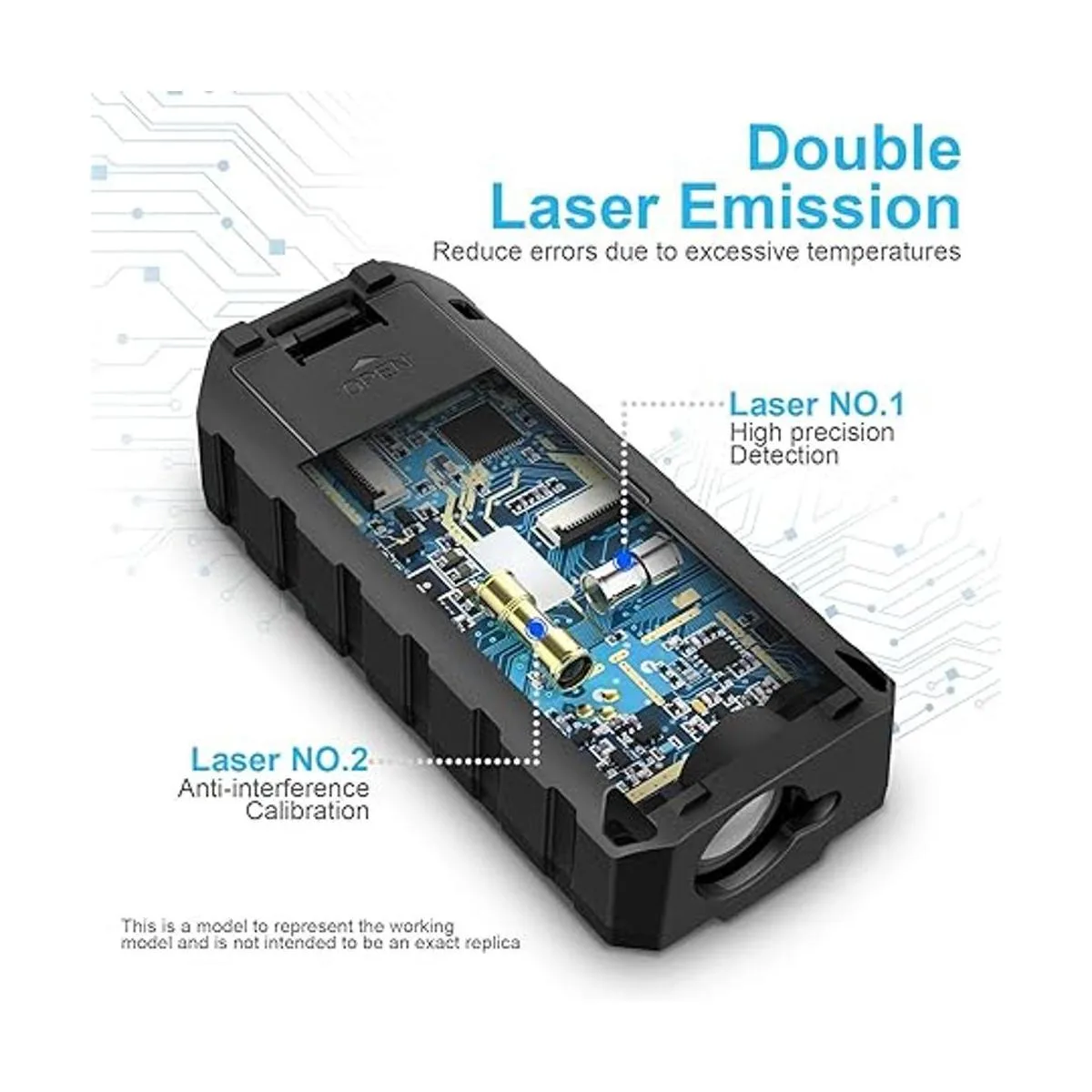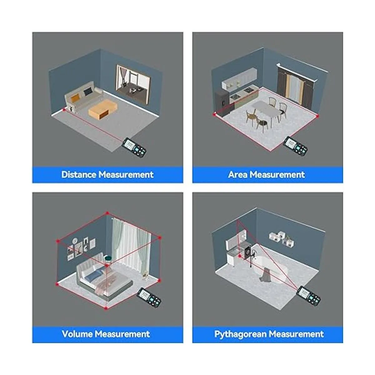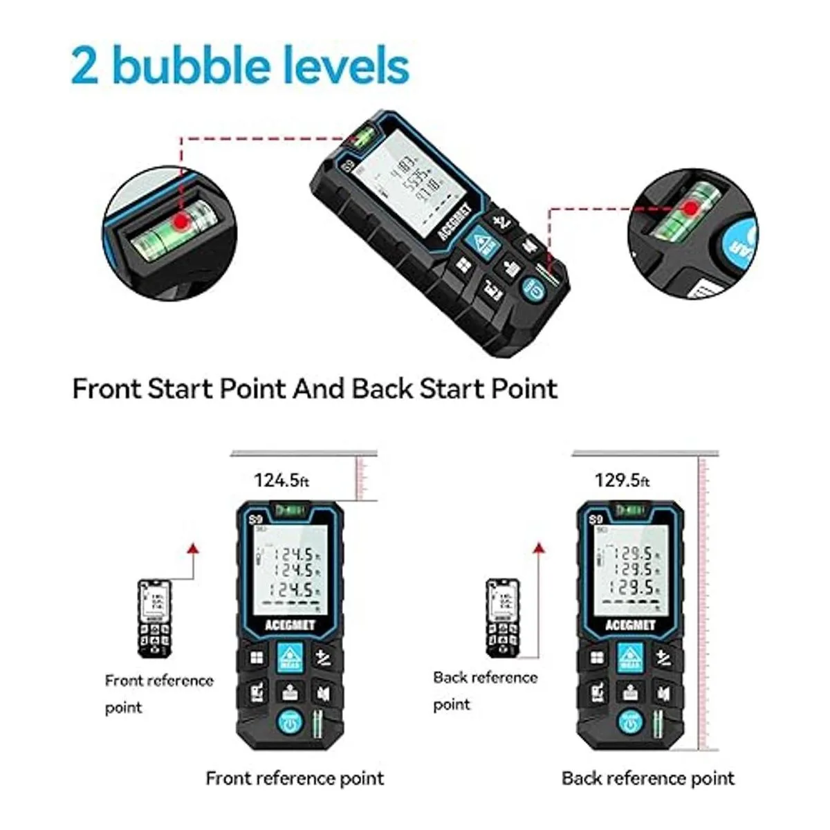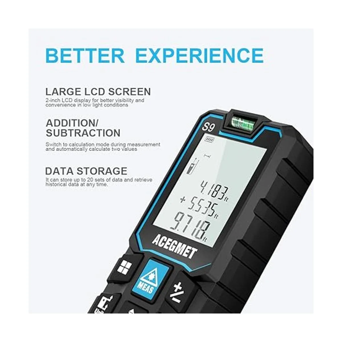 ACEGMET Herramienta de medición láser, cinta métrica láser de 393 pies de precisión 116 pulgadas, unidad Minft, pantalla LCD retroiluminada con botón de silencio, modo pitagórico, cinta métrica digital de área y volumen