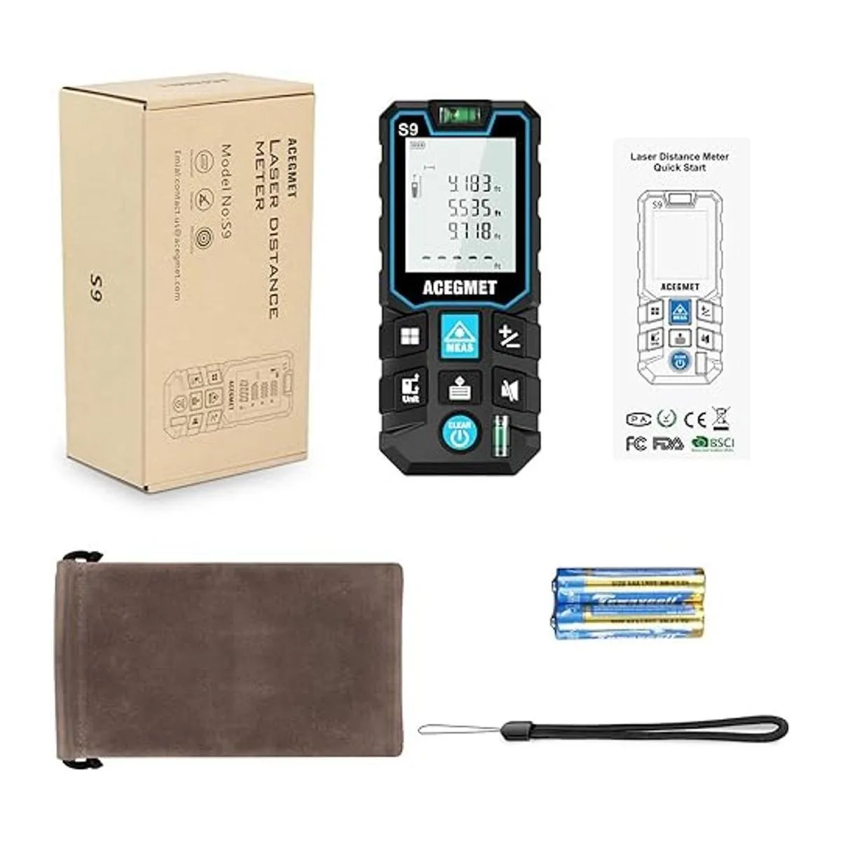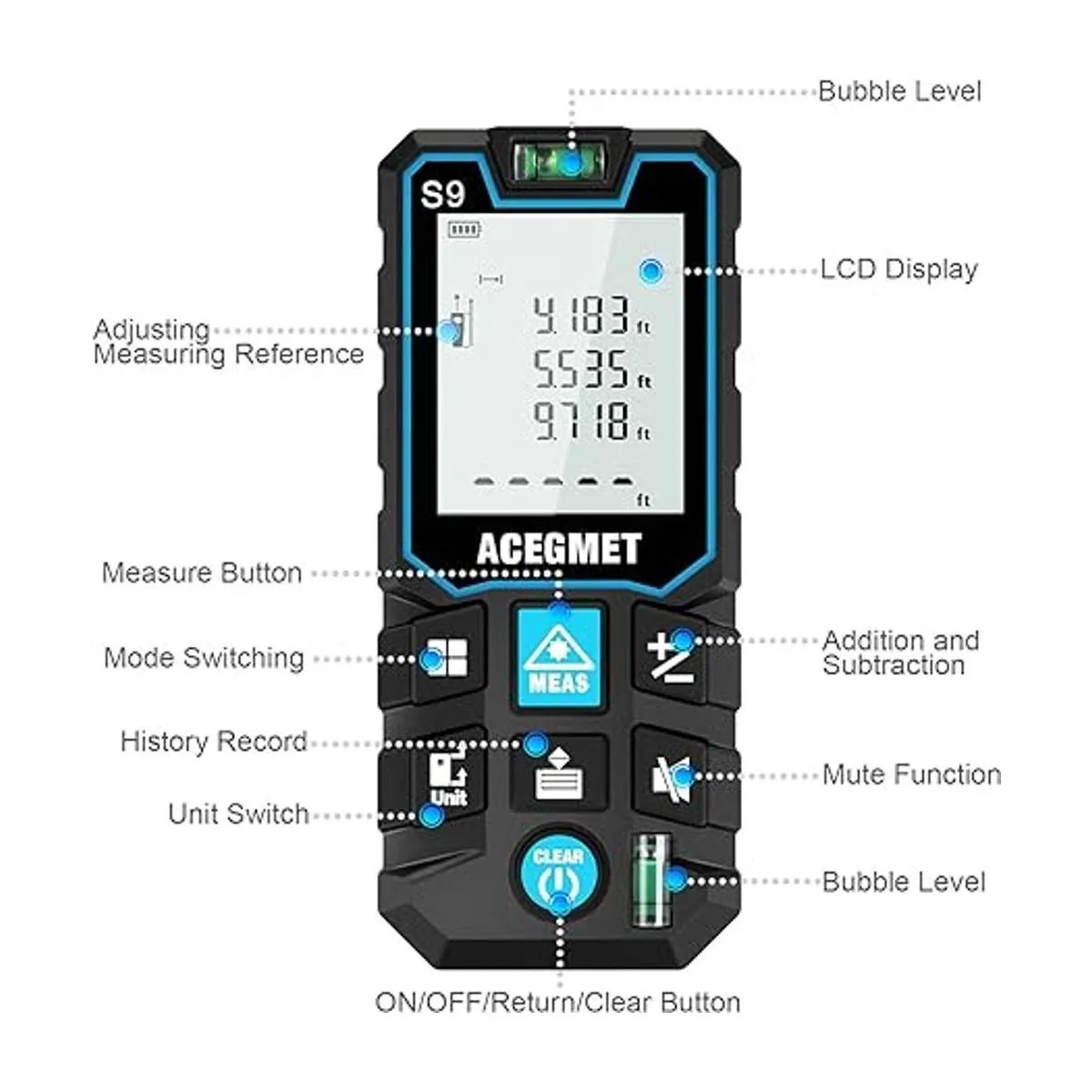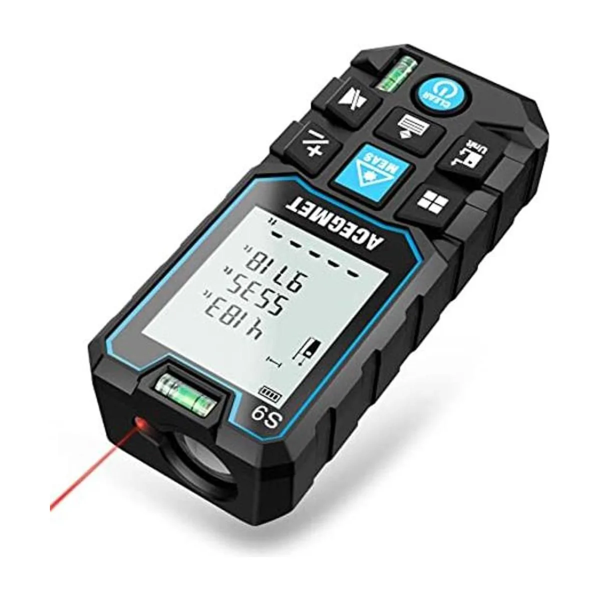 Una cinta métrica láser totalmente equipada diseñada para múltiples propósitos. Viene con una pantalla LCD que es fácil para los ojos. S9 es una herramienta de medición láser que perfora por encima de su peso: viene con todos los conceptos básicos como longitud, área, volumen e indirecto. Su láser se extiende hasta 393 pies y es preciso hasta 1/16 pulgadas, ofreciendo mucha más precisión que la cinta métrica digital estándar. Poder evitar errores, ahorrar tiempo y mejorar la productividad