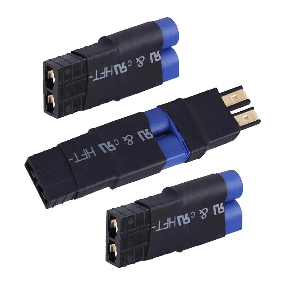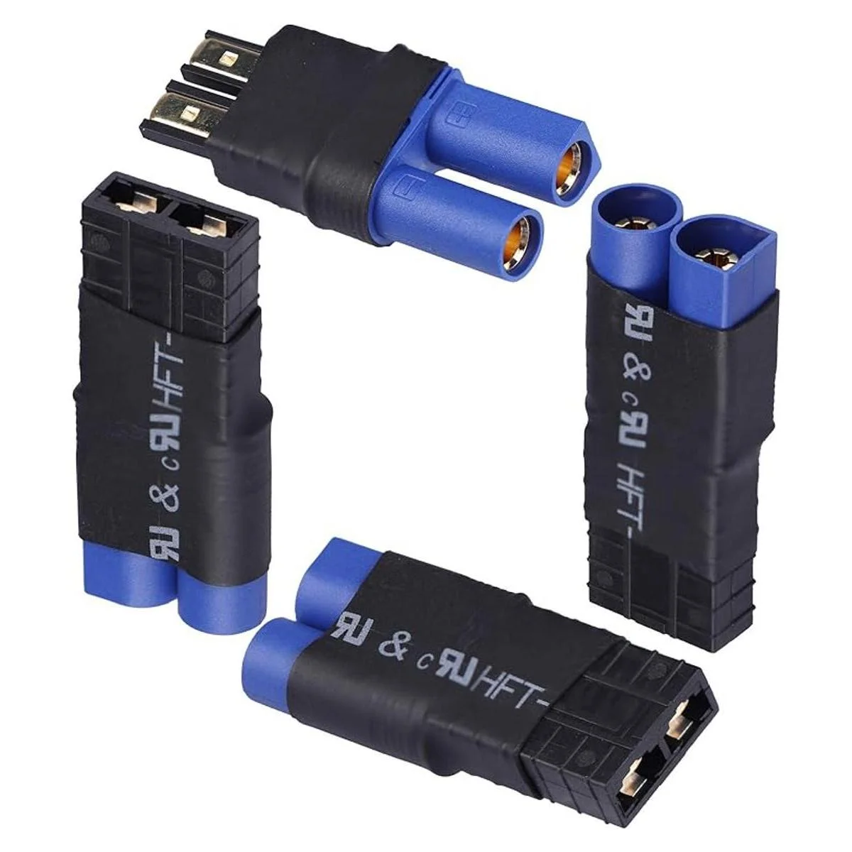 El paquete contiene: 3 adaptadores de batería RC para conector TRX hembra a EC5 macho; 1 adaptador de batería RC para conector TRX macho a EC5 hembra