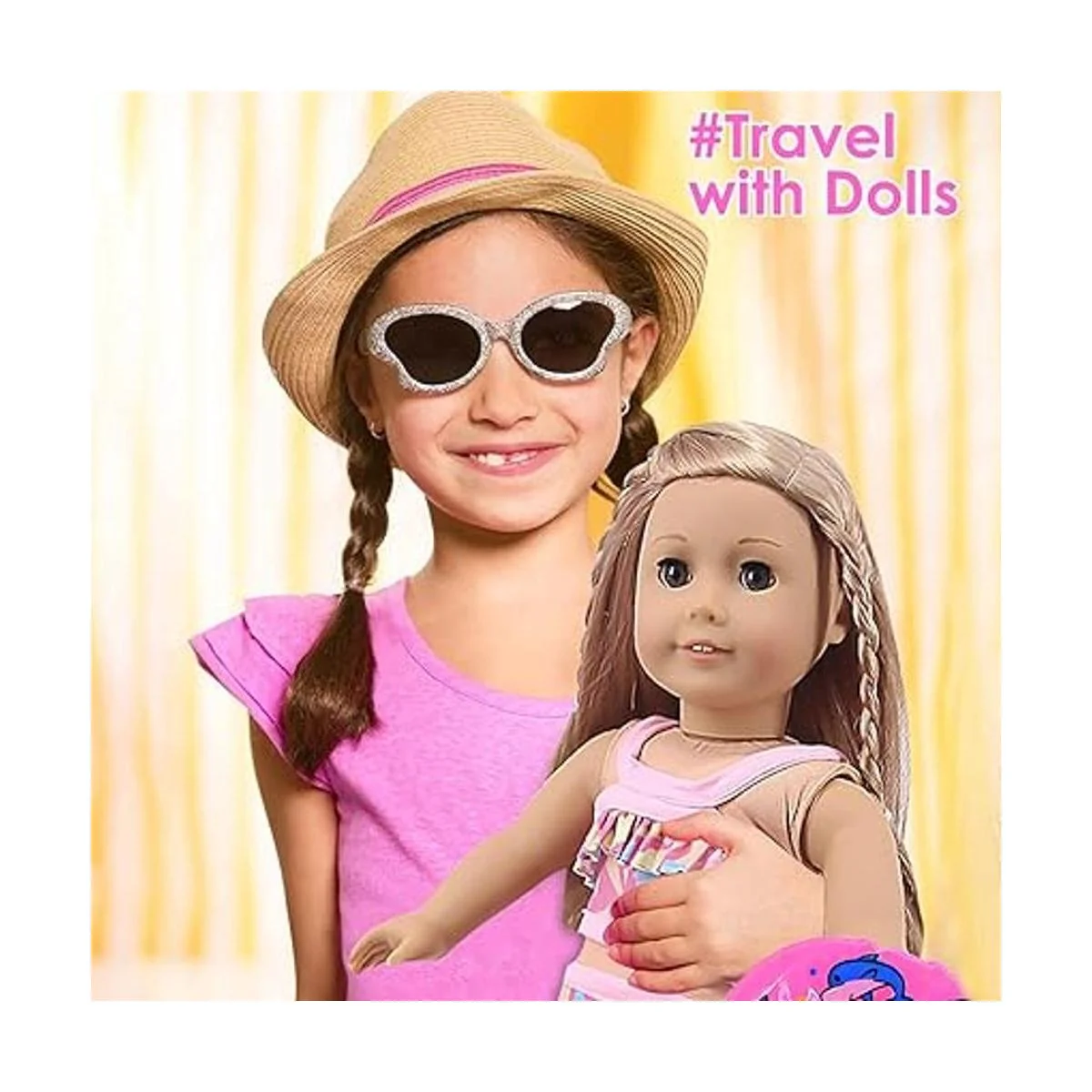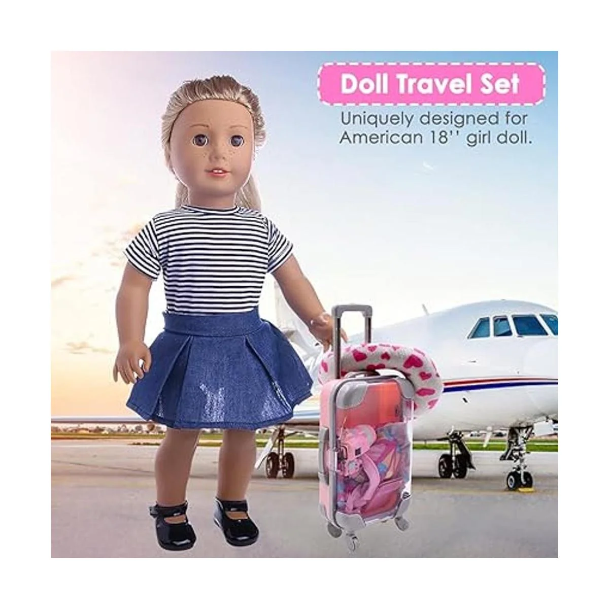 Acelane American Doll Juego de maleta de viaje para niña, muñeca de 18 pulgadas, equipaje de viaje, ropa de muñeca, lentes de sol para cámara y laptop, juguetes de simulación, regalo para cumpleaños, Navidad, fiesta, más