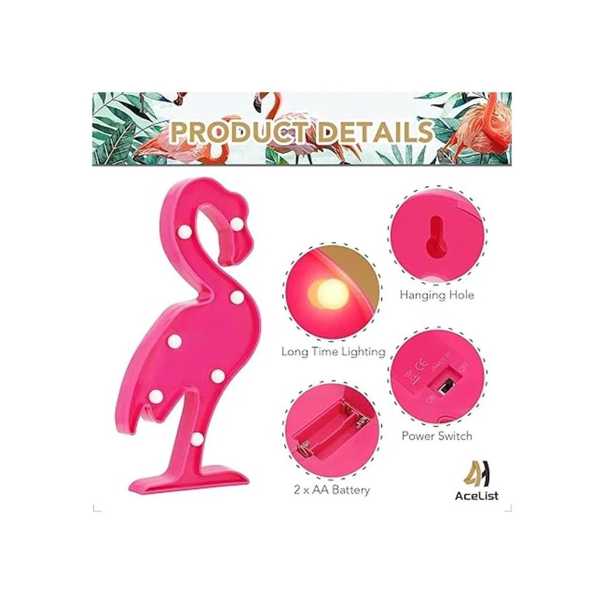 AceList Luau Decoraciones de fiesta de flamencos, luces de piña tropicales, suministros de fiesta con temática hawaiana, decoración de cumpleaños para pared, mesa de escritorio, centros de mesa