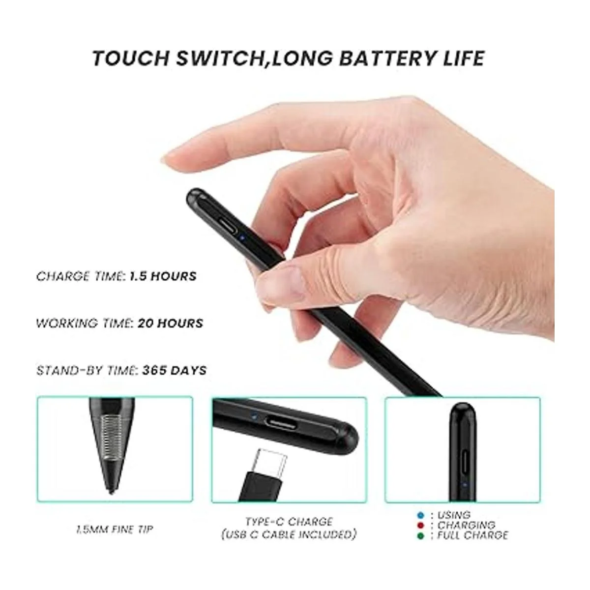Acer Chromebook Spin 15 Lápiz óptico, lápiz estilista activo para Acer Chromebook Spin 15 2 en 1, bolígrafos capacitivos digitales convertibles de alta precisión con punta ultrafina, control táctil y recargable, color negro