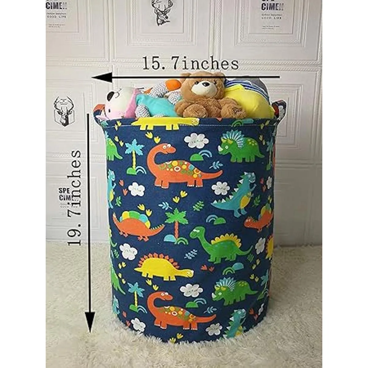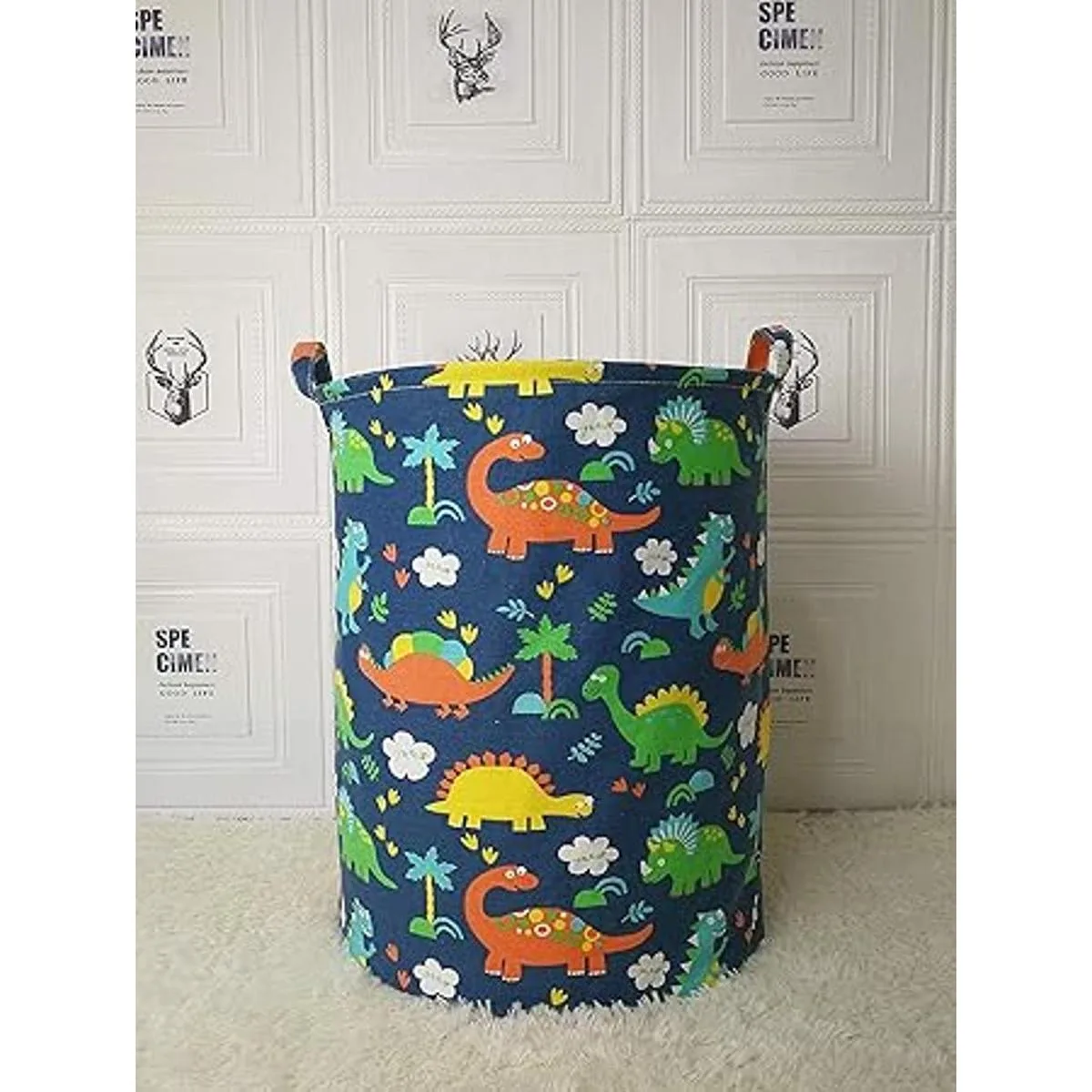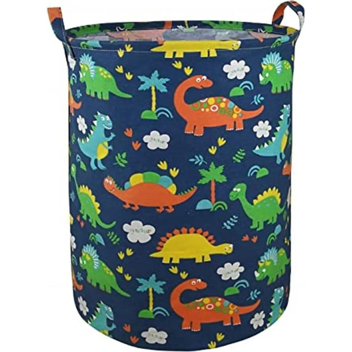 ACMUUNI Cesta redonda de lona para ropa de lavandería, dinosaurio azul oscuro
