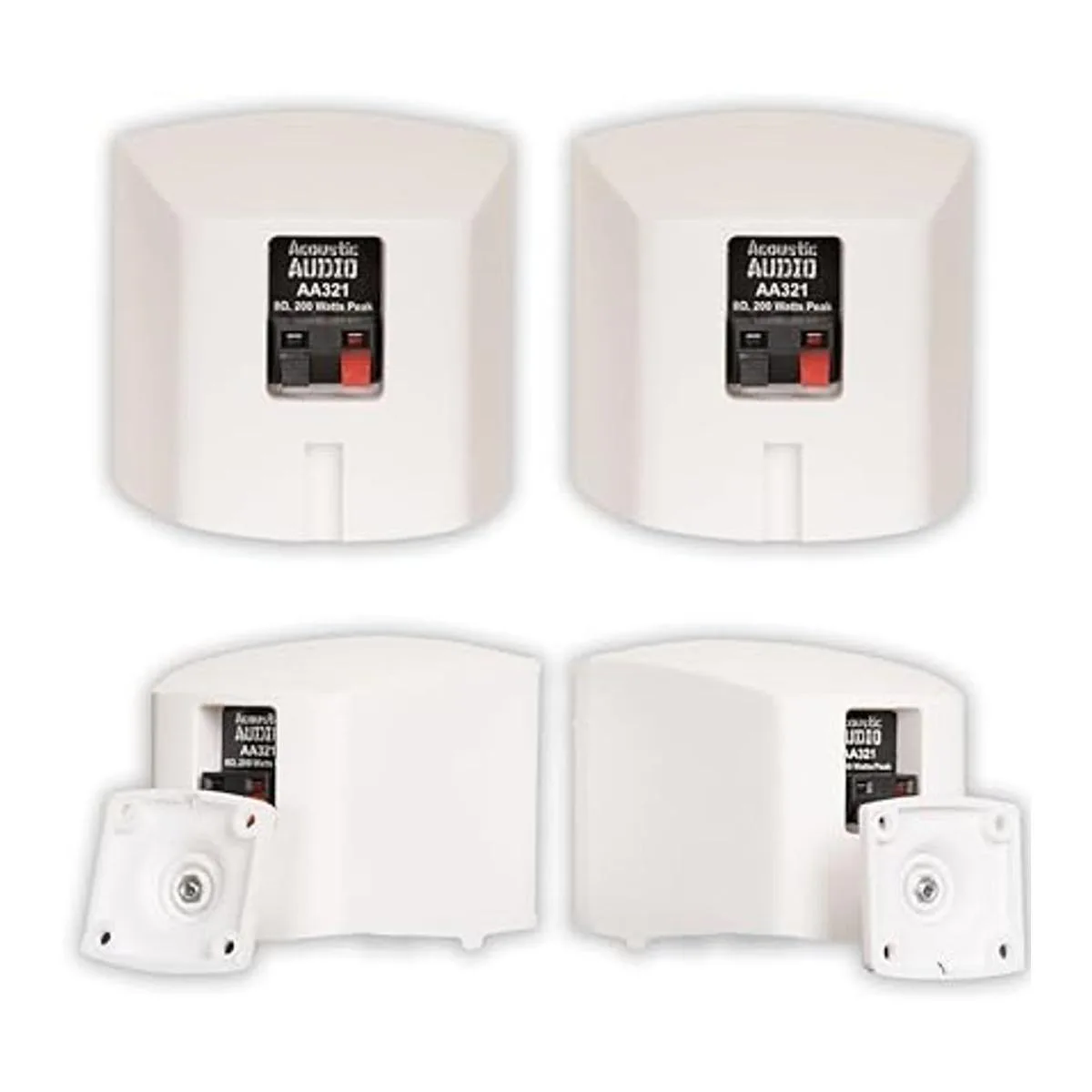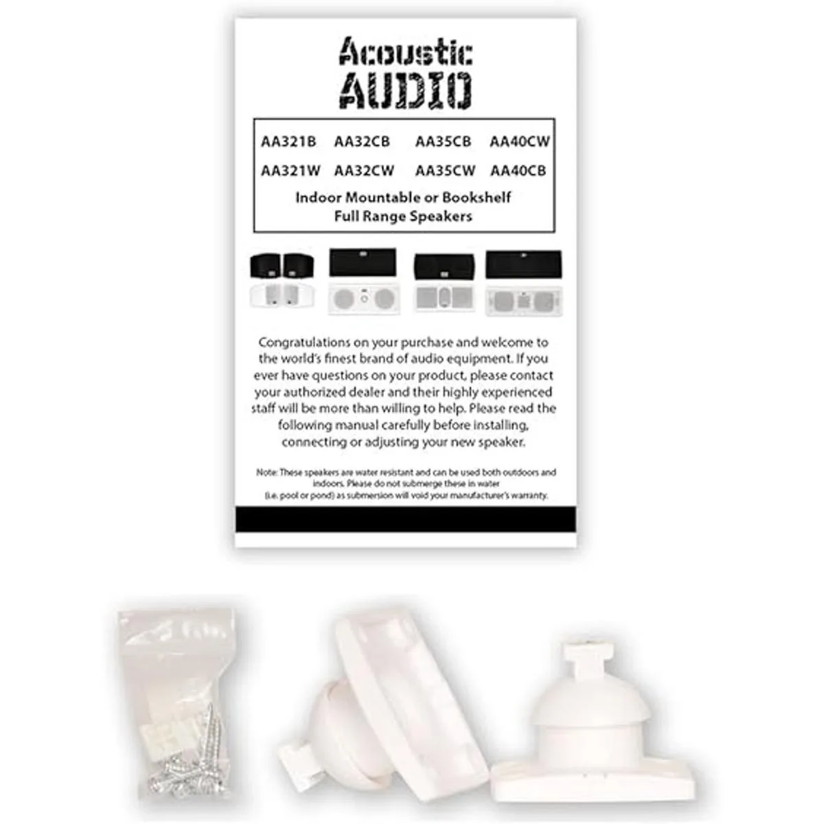 Contenido de la caja: 2 altavoces de audio acústico de Goldwood AA321W, soportes de montaje con hardware, manual de instrucciones idioma español no garantizado. Uso para sonido envolvente de cine en casa, sistemas de audio de toda la casa, instalaciones de negocios o minoristas, patios, cubiertas, piscinas y ajustes de spa