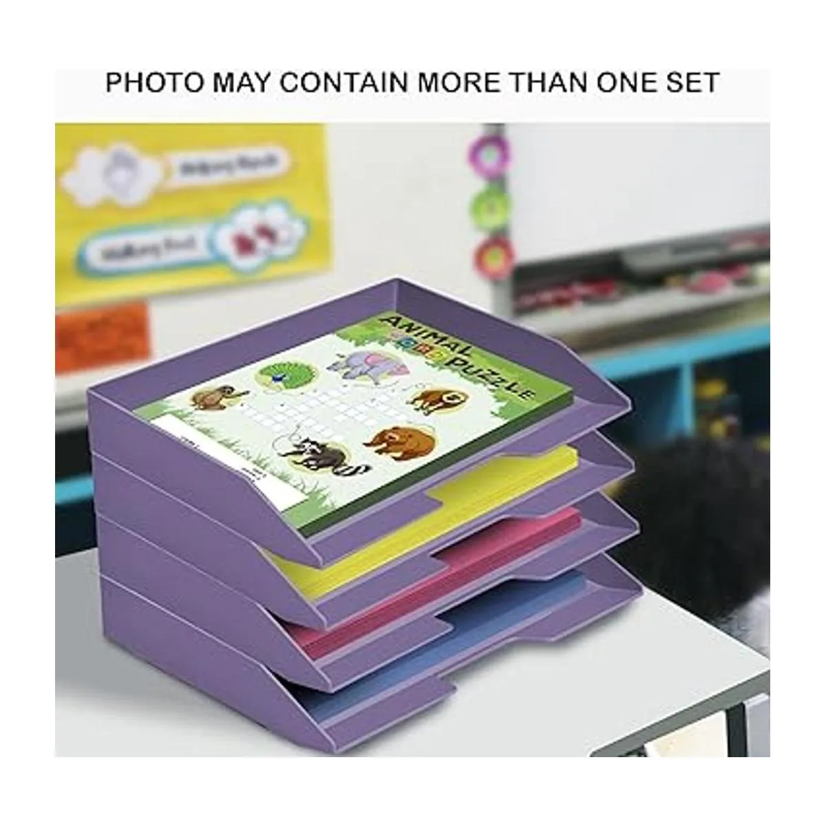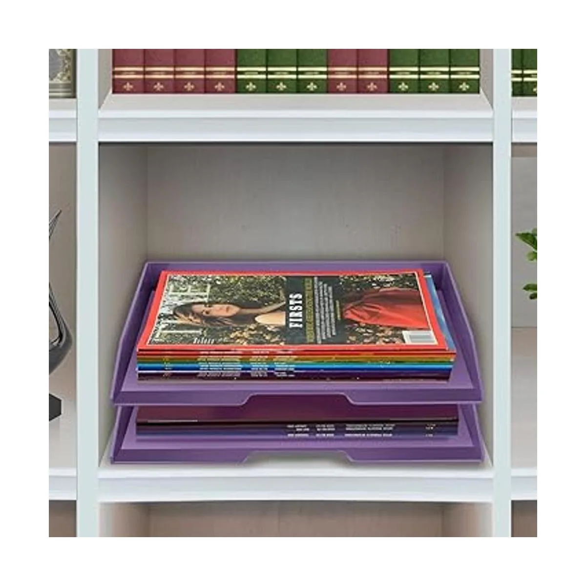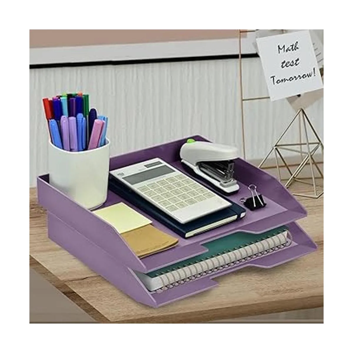 Acrimet Bandeja apilable para cartas 2 niveles, plástico, color morado sólido