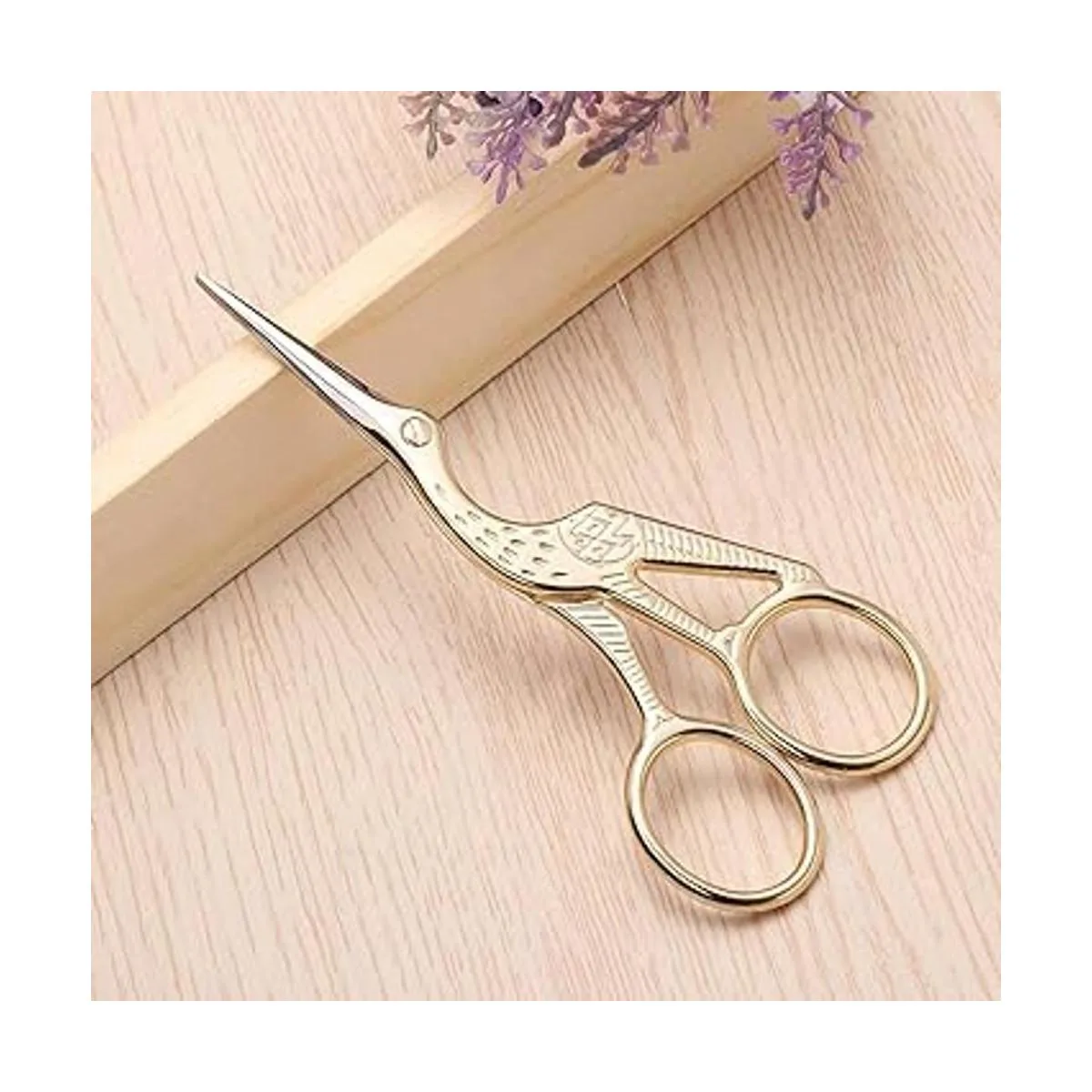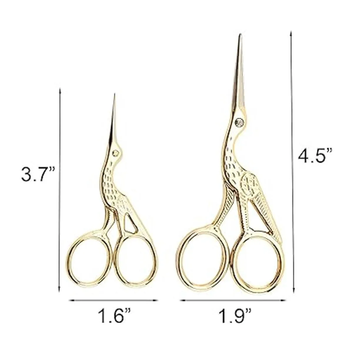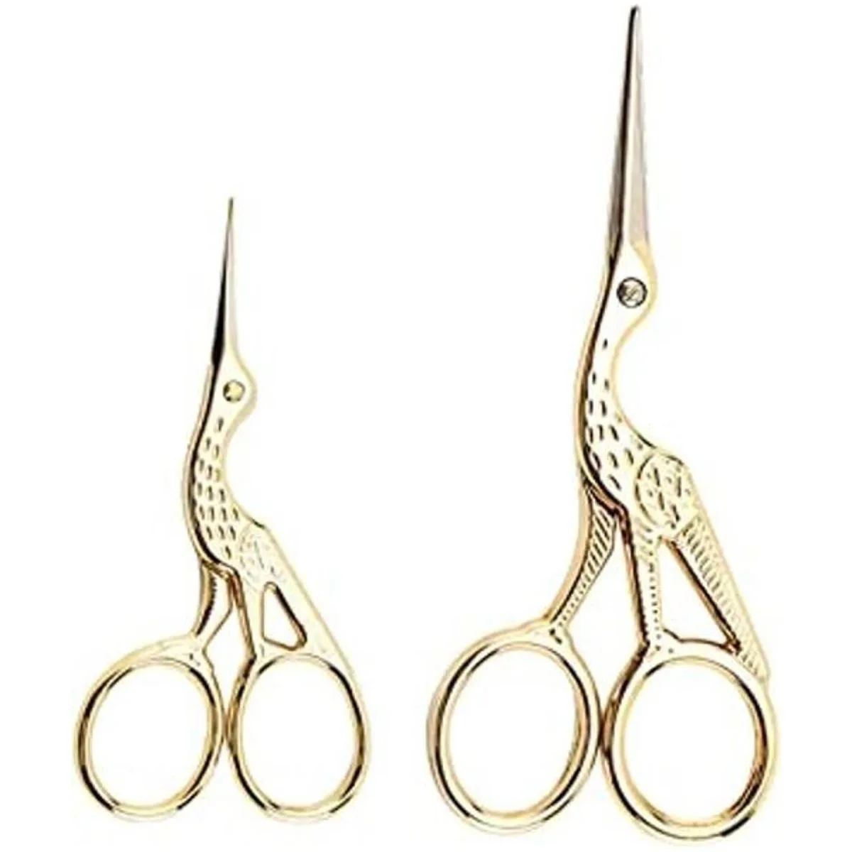 Acronde 2 tijeras de costura vintage con forma de cigeña, tijeras de sastre de acero inoxidable para bordado, costura, manualidades, trabajo de arte y uso diario dorado