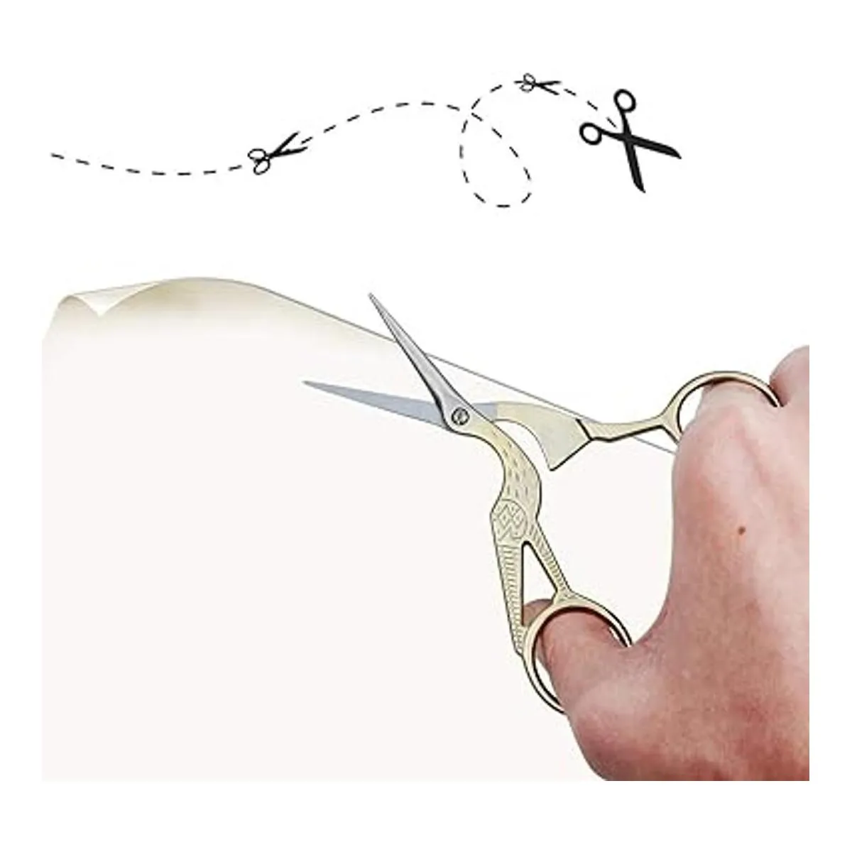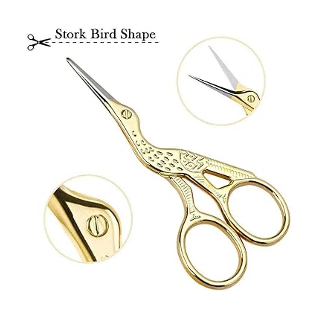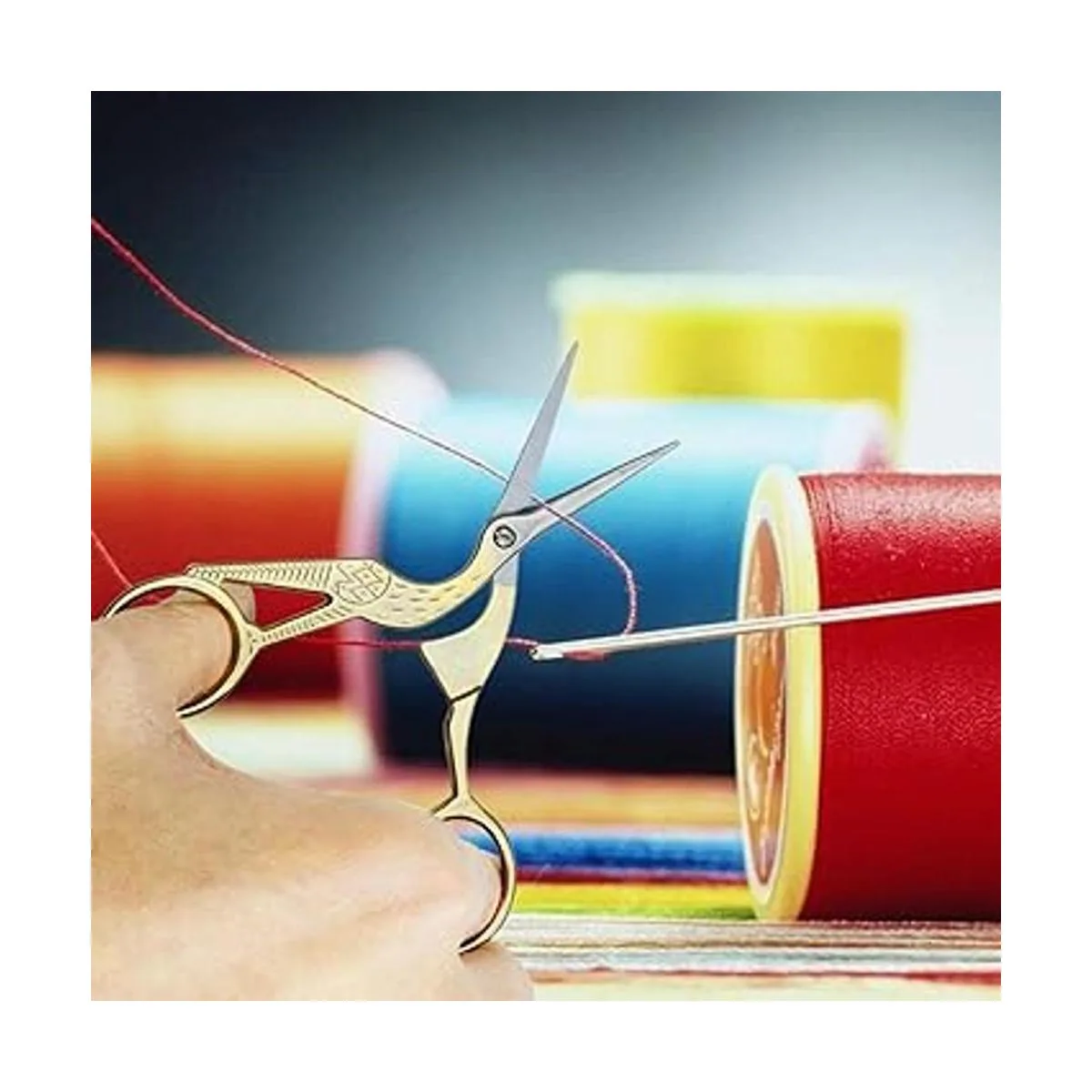 Acronde 2 tijeras de costura vintage con forma de cigeña, tijeras de sastre de acero inoxidable para bordado, costura, manualidades, trabajo de arte y uso diario dorado