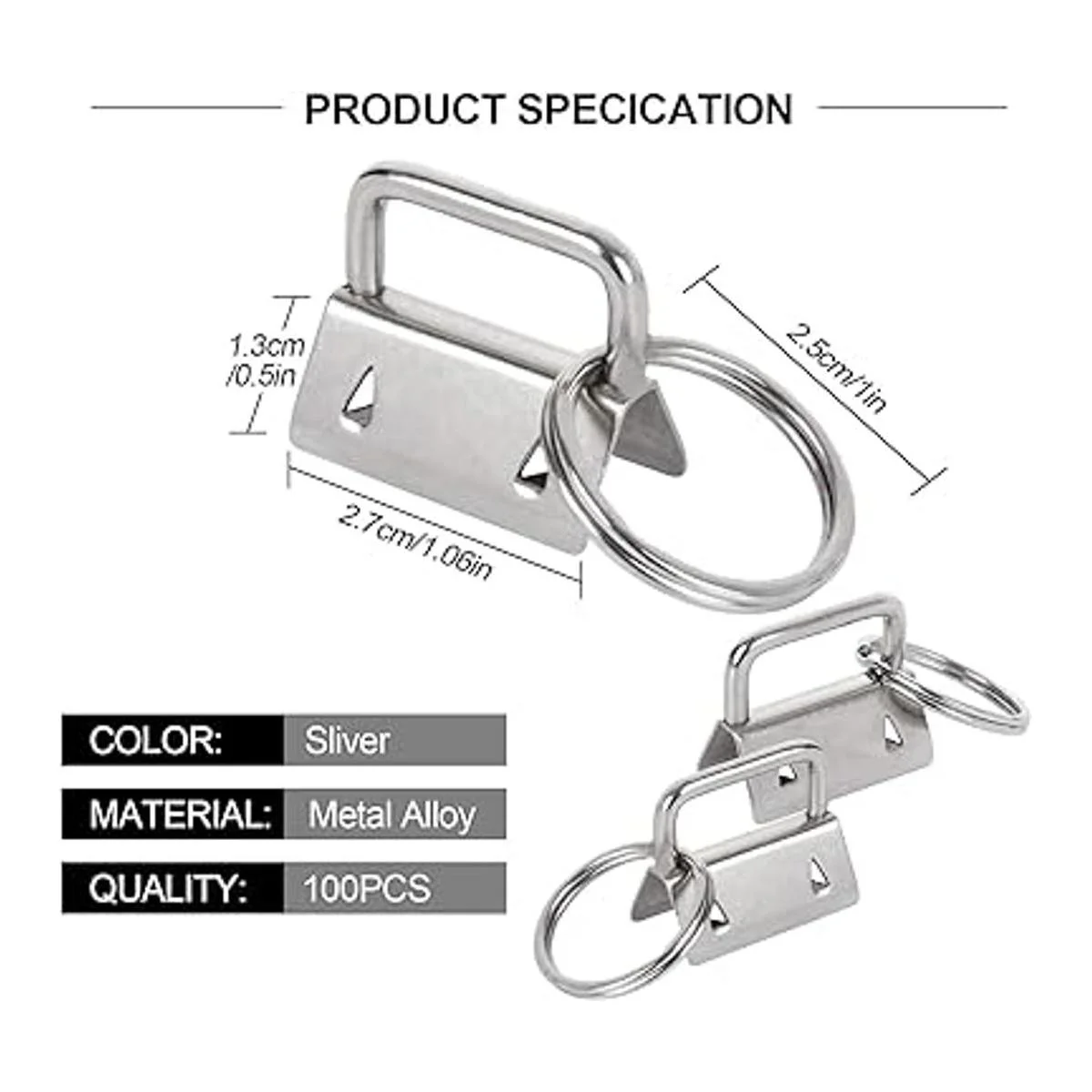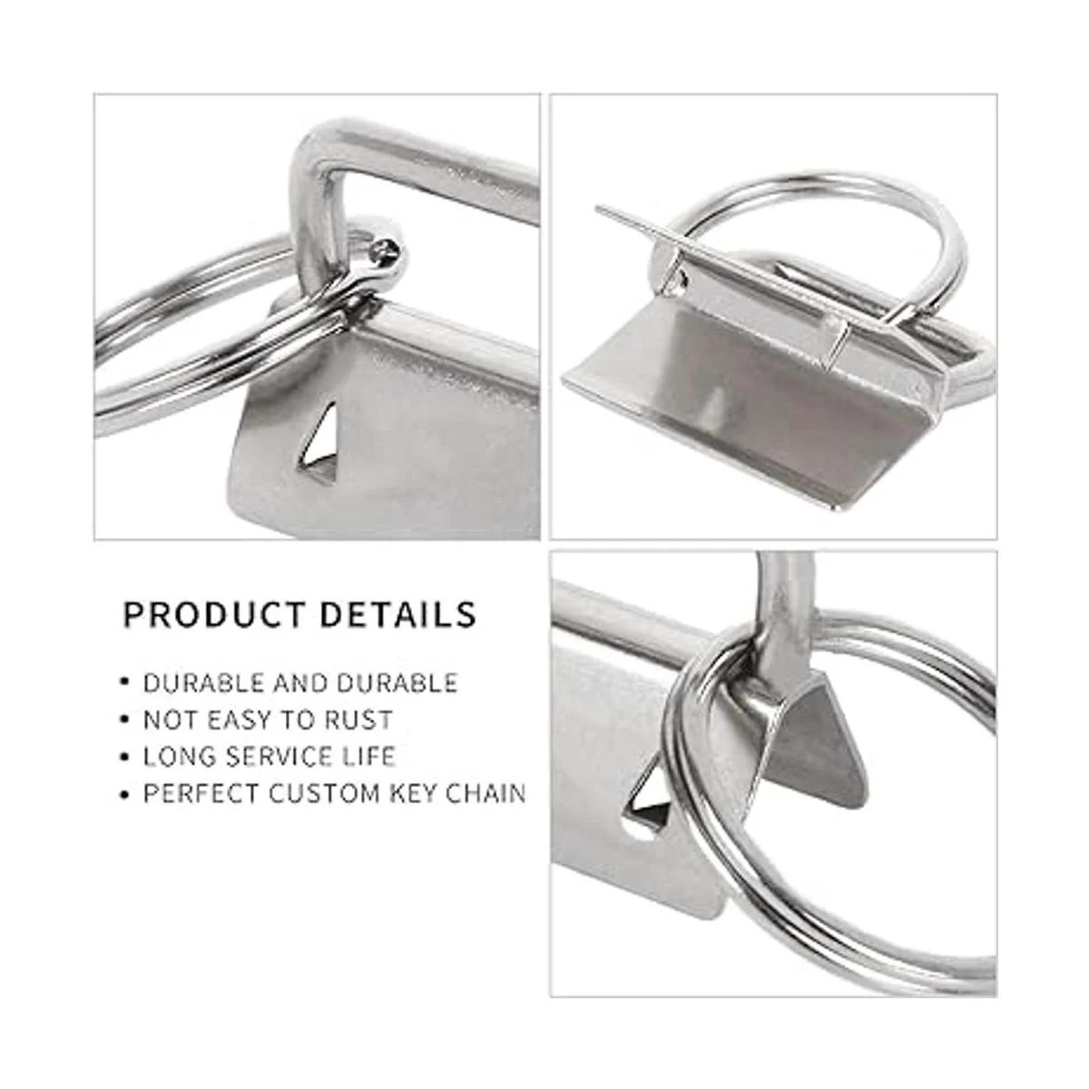 Material de alta calidad: estos 100 accesorios para llavero están hechos de materiales de alta calidad chapados en hierro metálico que los hacen resistentes, seguros e hipoalergénicos, no se oxidan ni corroen fácilmente.