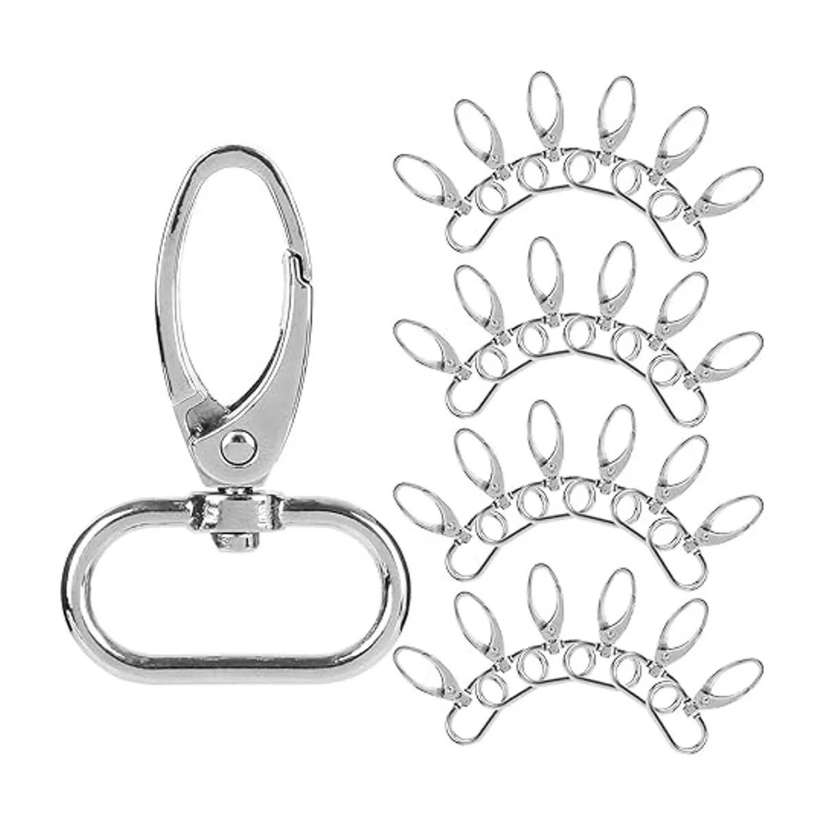 Acrux7 cierres giratorios de 1.0 in, 50 cierres de langosta curvados plateados, gatillo giratorio, para manualidades y hacer cordones