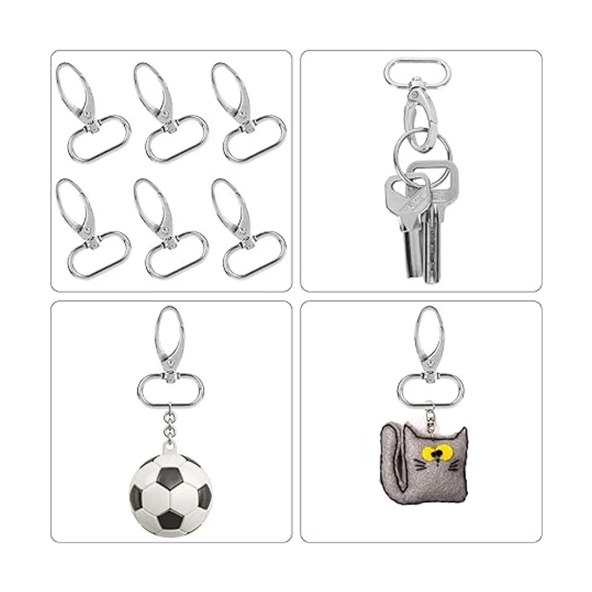 Multiusos: es adecuado para colgar llaves, botellas, cinturones, cuerdas, cinturones de seguridad, etc. También puede hacer joyas y manualidades. Aplicable a llaveros, llaveros, encantos y otras manualidades, así como para utilizar en correas de perro.