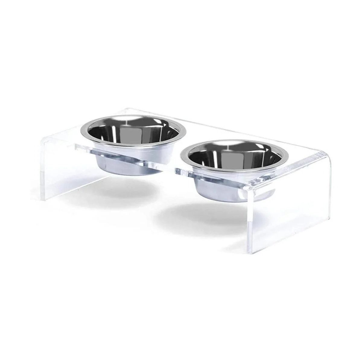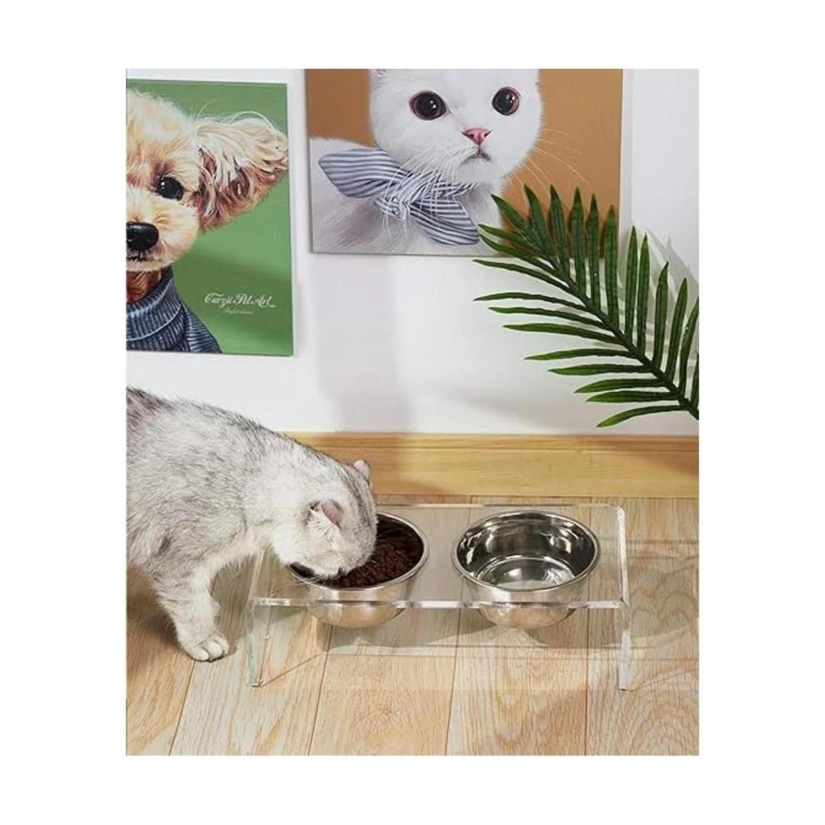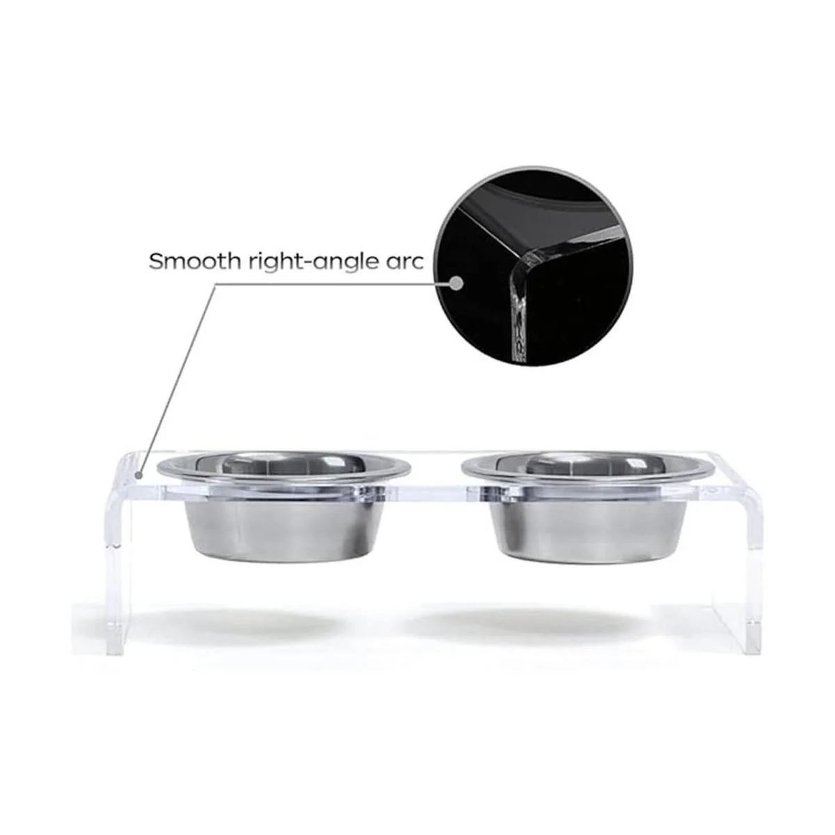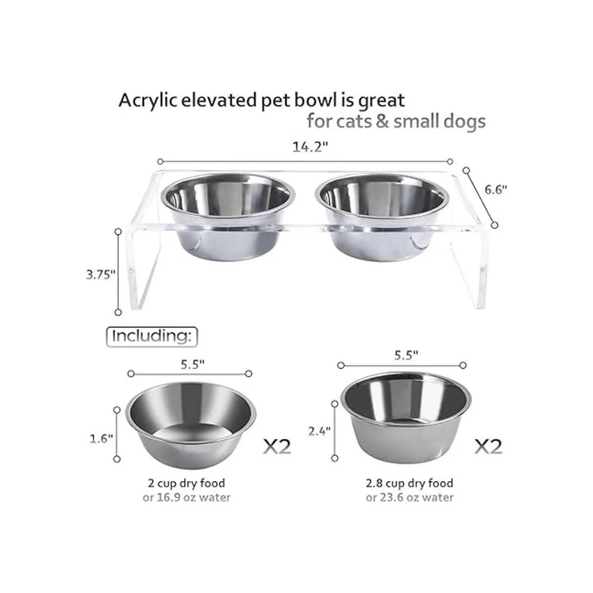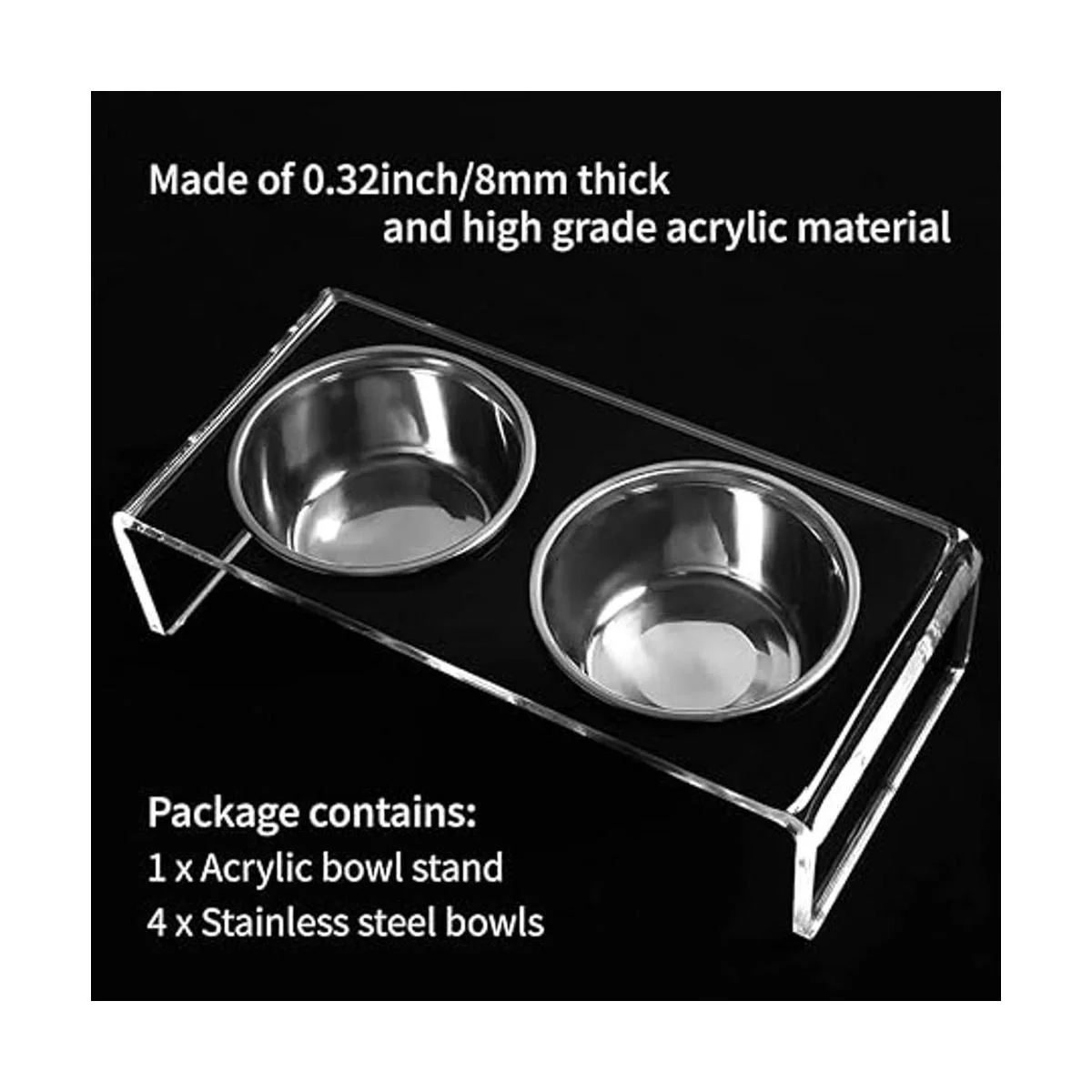 Acrylic Elevated Dog and Cat Pet Feeder Raised Clear Feeding Stand for Cats and Small Dogs with 2 Set Removable Food and Water Bowls,Perfect for Pets Puppies Small Dogs and Cats