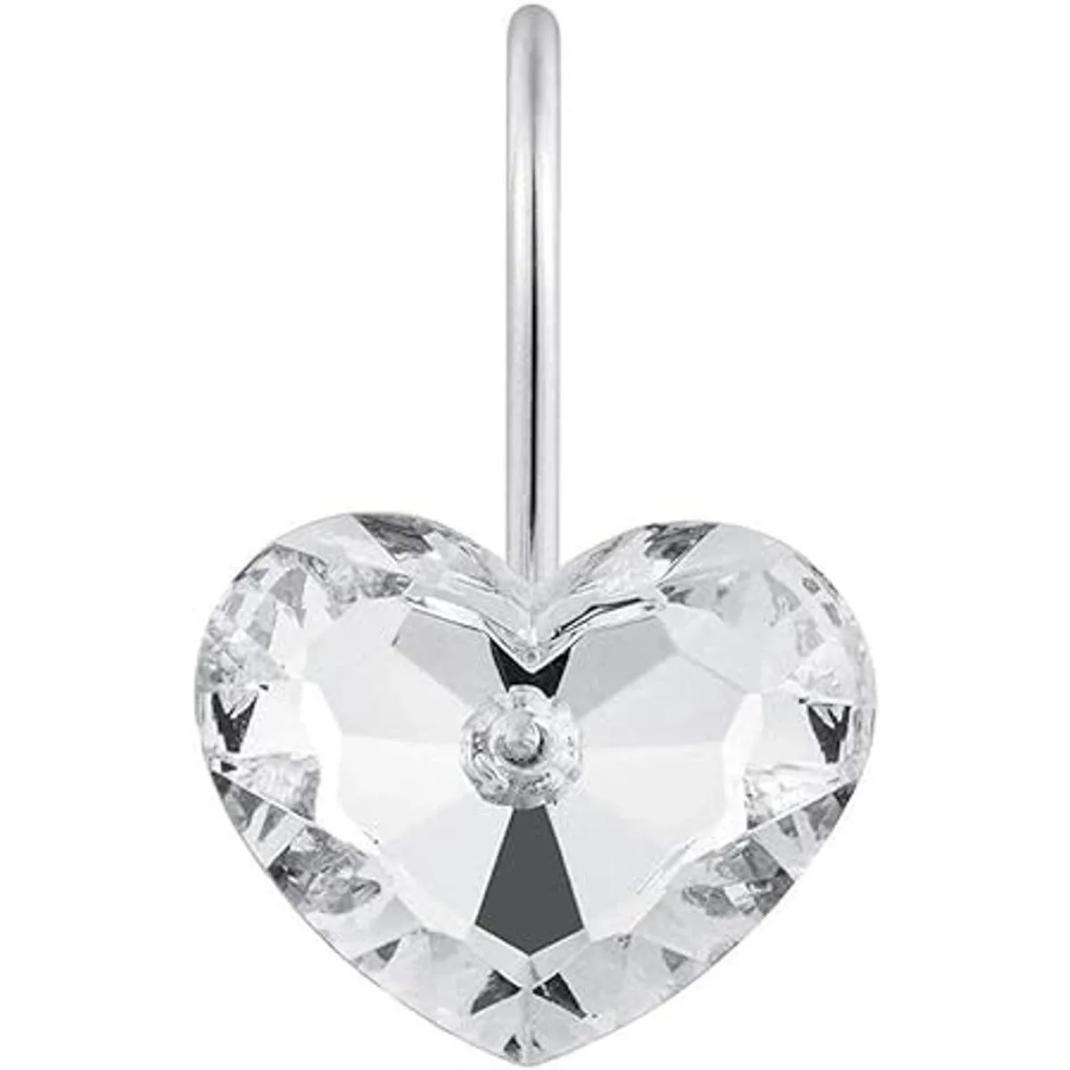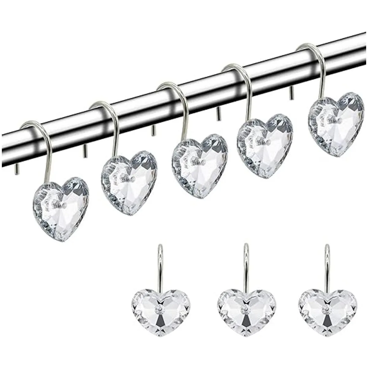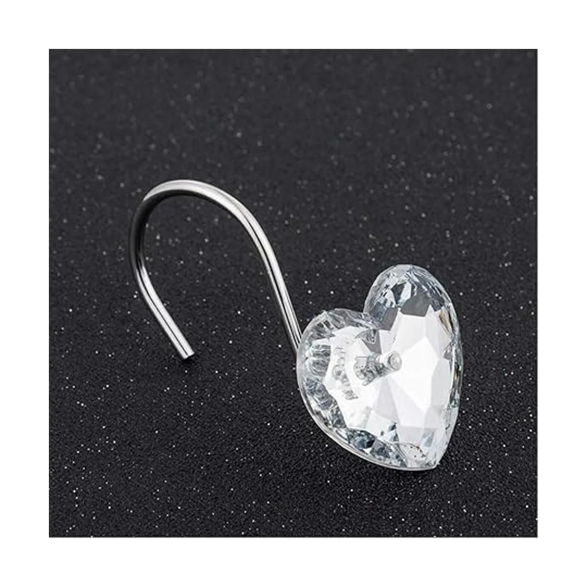 Actpe Ganchos decorativos para cortina de ducha con forma de corazón de cristal, ganchos resistentes al óxido, anillos de ducha, soporte para baño, paquete de 12