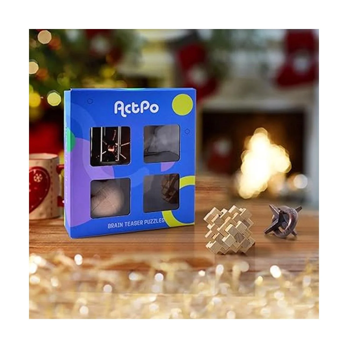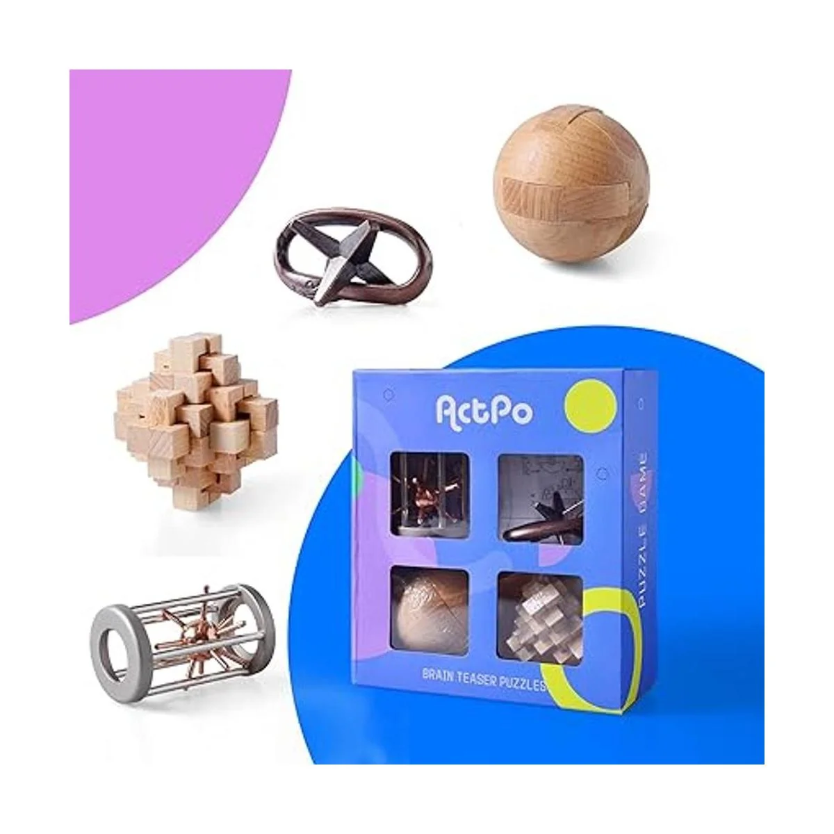 ActPo Rompecabezas de madera y metal de 4 piezas de regalo