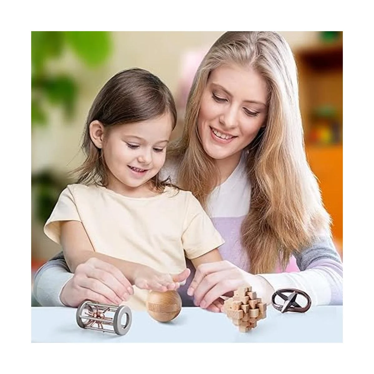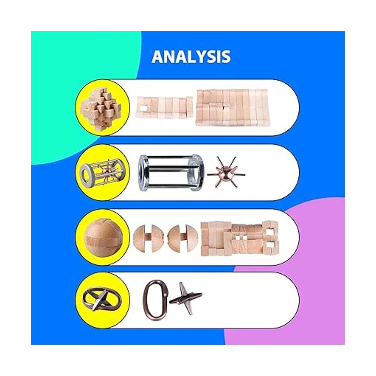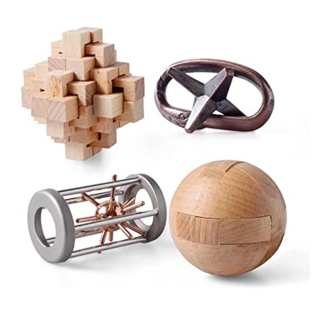 ActPo Rompecabezas de madera y metal de 4 piezas de regalo para niños y adultos, juguetes educativos de oficina, desbloqueo en 3D, varios rompecabezas de rompecabezas