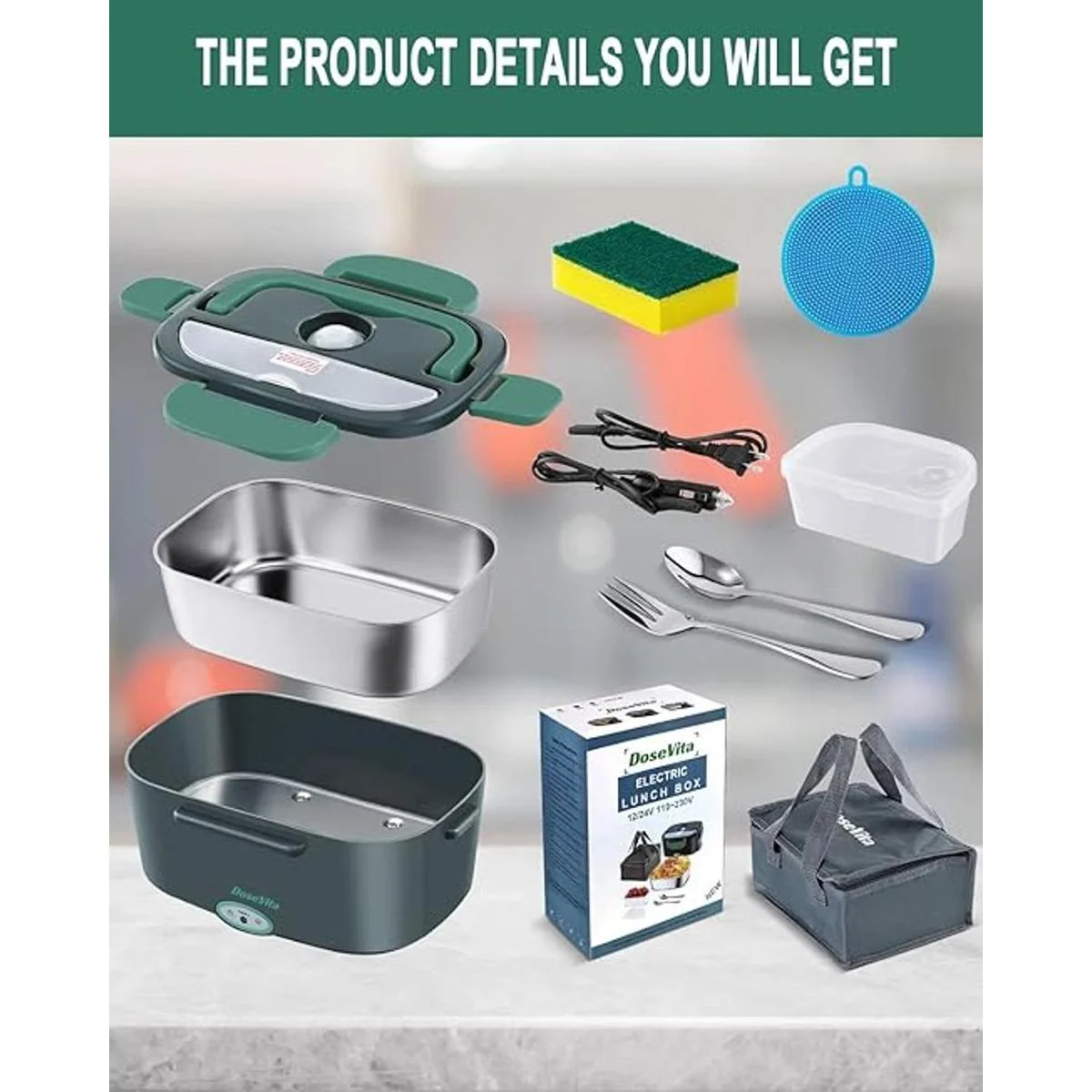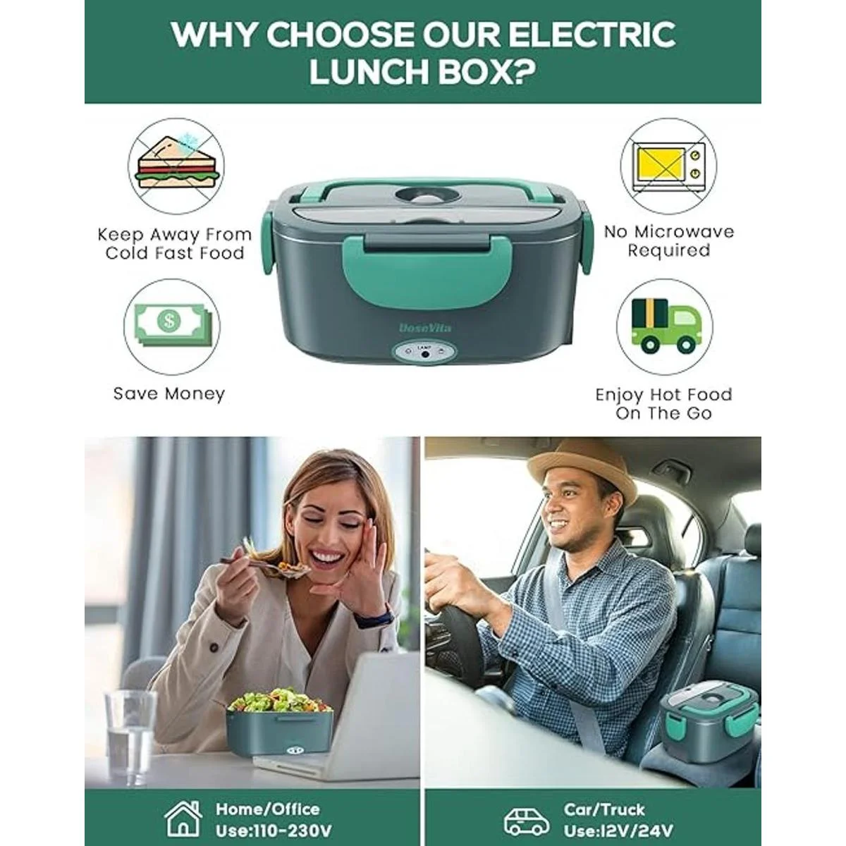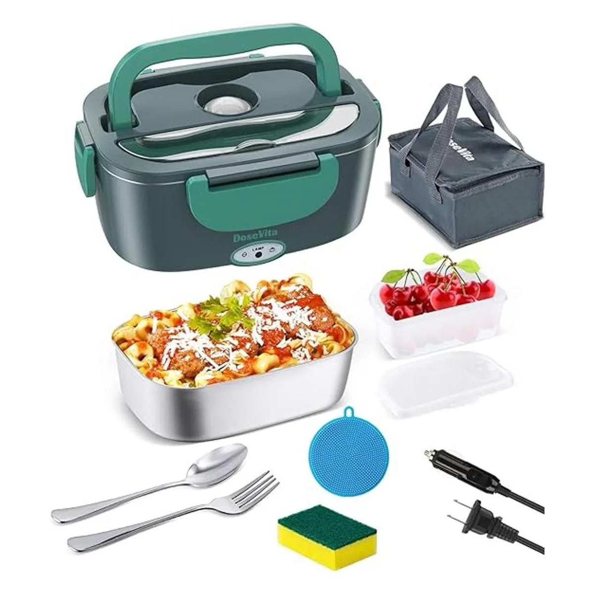 Calentamiento más rápido de 80 W: tecnología de calefacción de temperatura constante de 80 W que ahorra rápidamente calor y tiempo. No requiere microondas. Al elegir nuestra lonchera eléctrica, disfrutarás de las comidas caseras cálidas y saludables fácilmente. La lonchera autocalentable Dosevita está diseñada para personas en la oficina, escuela, hospital, coche, camión, sitio de construcción, trabajo fuera o sobre la marcha.