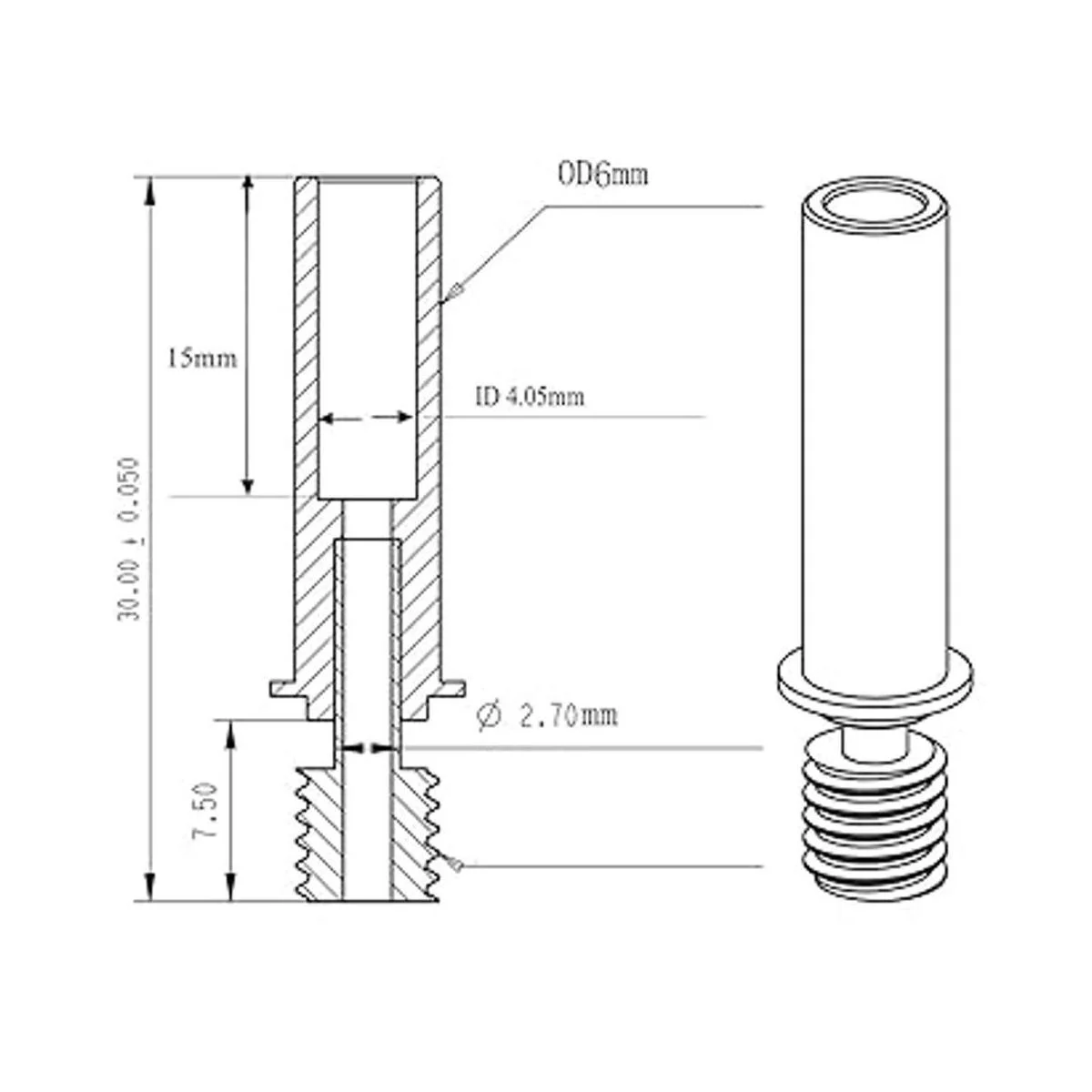 Este Heatbtreak está hecho de dos componentes, cobre y titanio TC4. El titanio TC4 reduce la conducción del calor hacia arriba en la posición de calentamiento, y el cobre para la disipación del calor para acelerar la conducción del calor.
