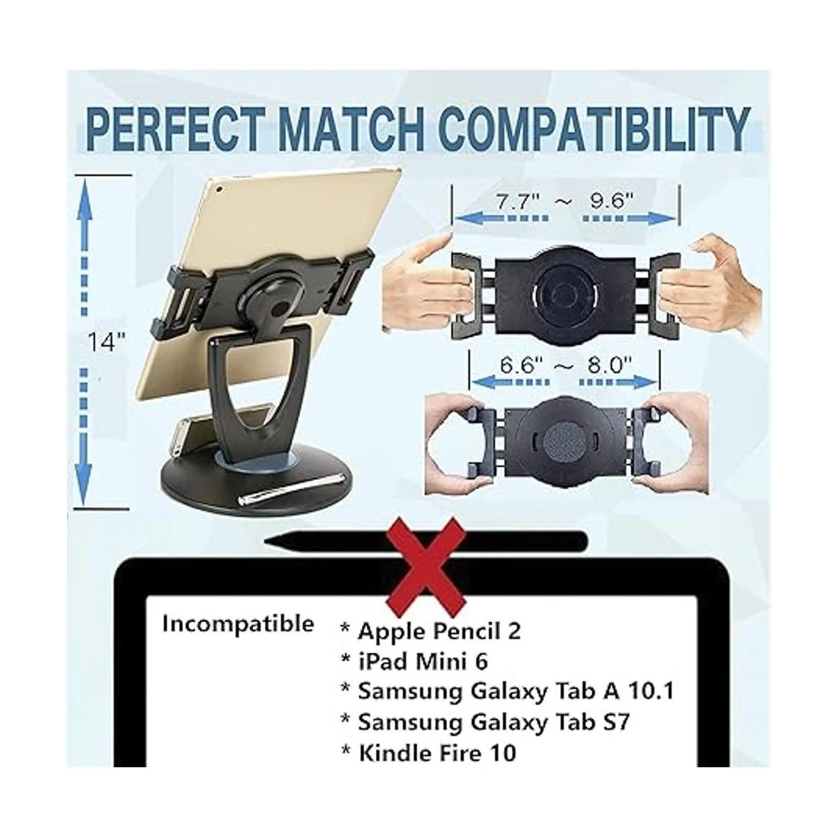 Múltiples usos: este soporte para iPad no solo es bueno para trabajar en casa, sino también perfecto para tu negocio, tienda, tienda y venta al por menor como un soporte para iPad de oficina, soporte para iPad POS, soporte para quiosco para iPad y soporte para estación de acoplamiento. Te permite escribir, presionar, ver y girar con gran estabilidad