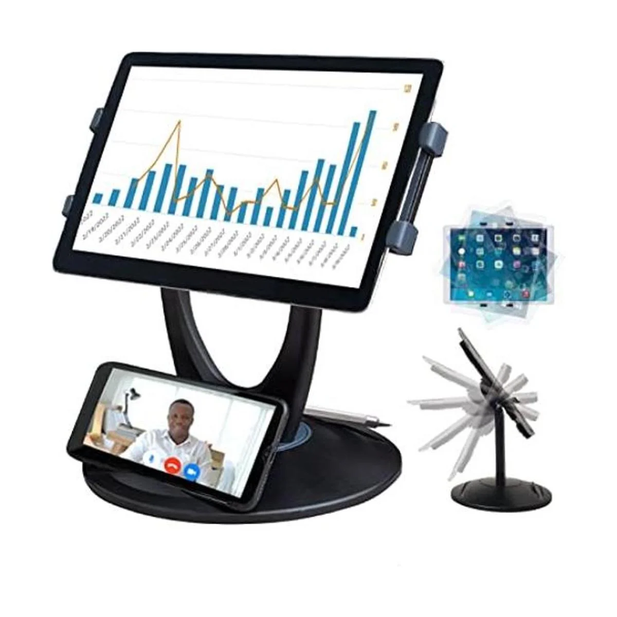 Base alta y estable: la base alta y pesada permite que tu tableta gire fácilmente. Perfecto para restaurantes, recepción, cajeros, estaciones de acoplamiento de negocios y dispositivos de punto de venta con un lector cuadrado, registro, confirmación, discusión, exhibición, exhibición con tus clientes, inversores, compañeros de trabajo y amigos