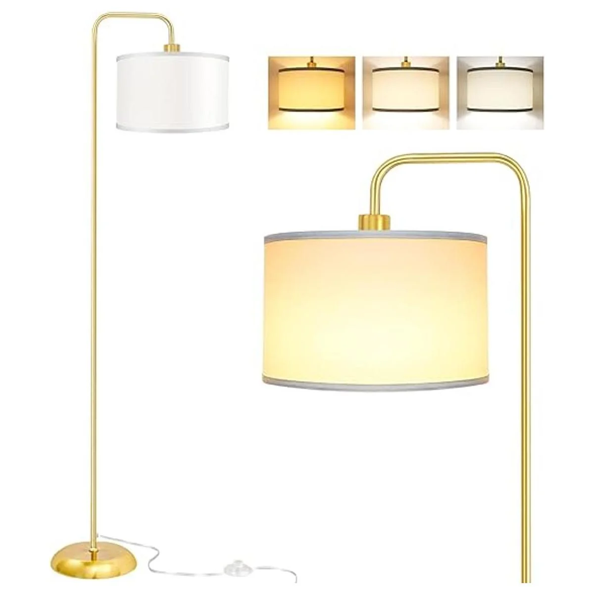 Actualizada Lámpara de pie LED para sala de estar, lámpara de pie de temperatura de 3 colores con interruptor de pie, lámpara de pie moderna de poste alto para dormitorio, sala de estudio, oficina, bombilla de 9 W incluida, color dorado