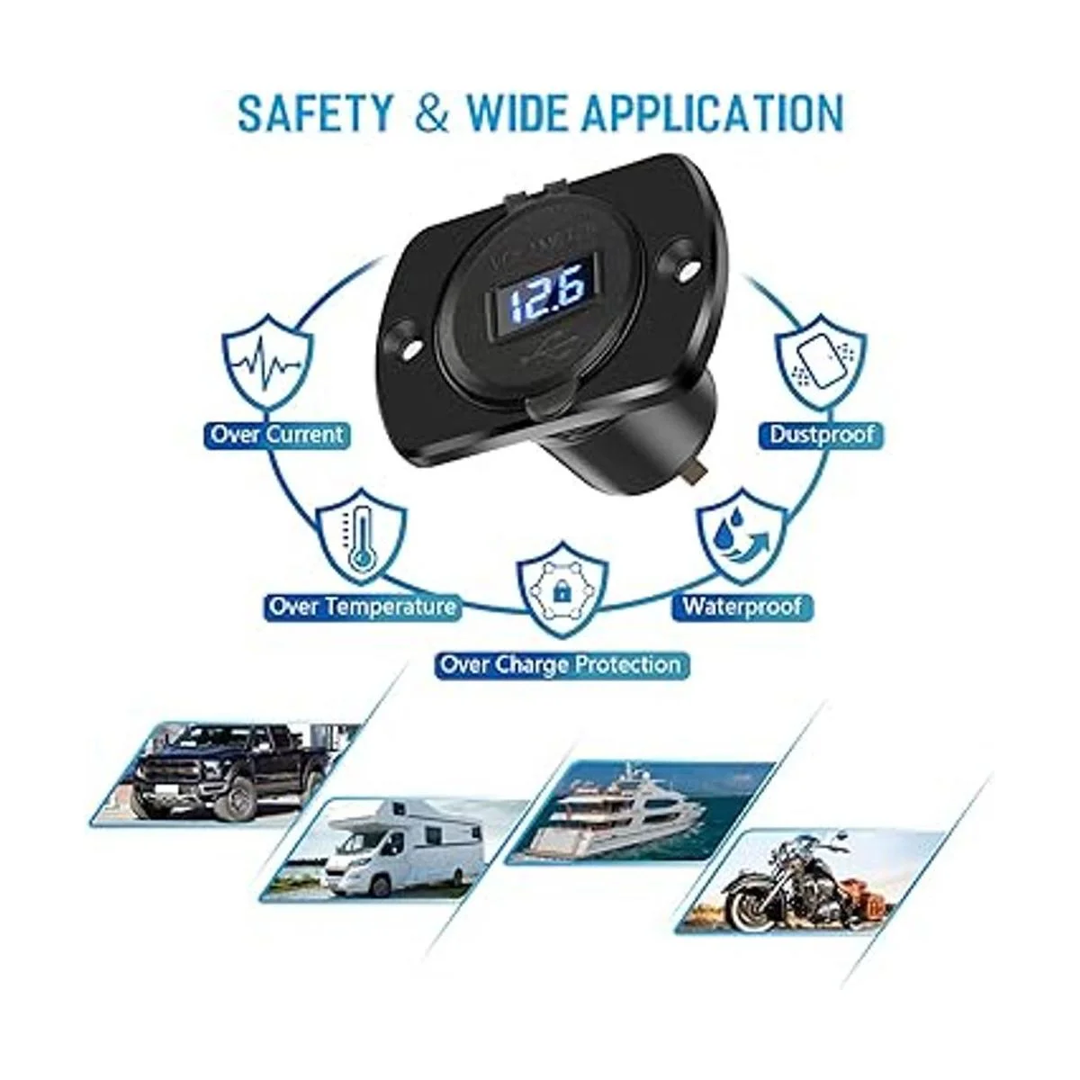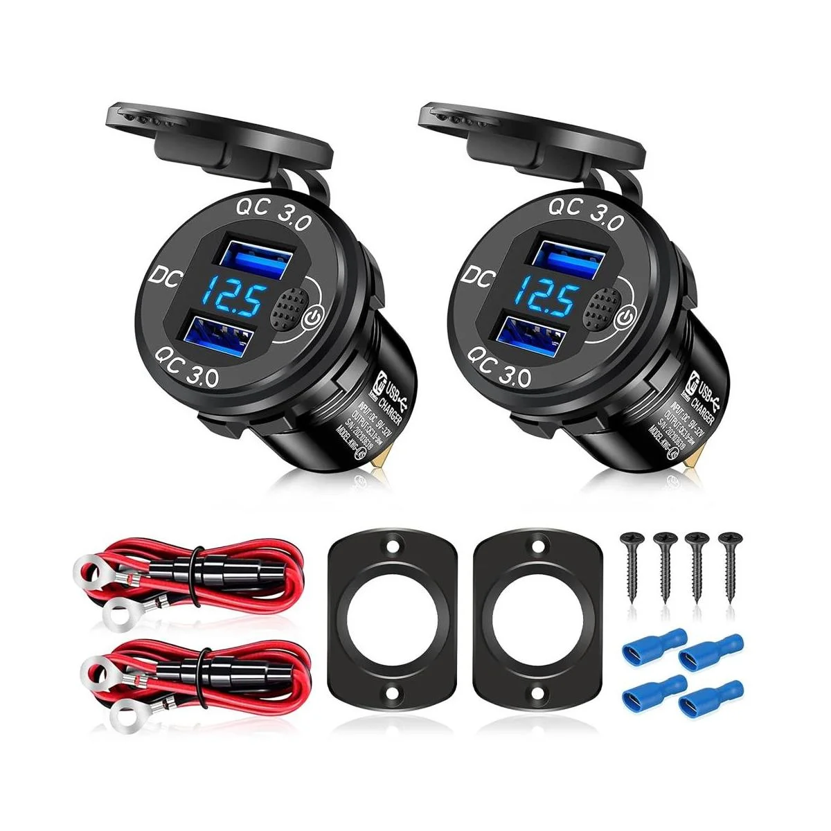 Actualizado 2 tomas de corriente USB de 12 V24 V con voltímetro e interruptor de encendidoapagado, carga rápida 3.0 doble toma de corriente USB, impermeable, cargador USB, kit de bricolaje para automóvil, barco marino paquete de 2