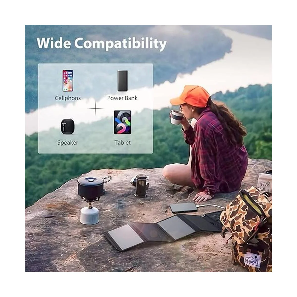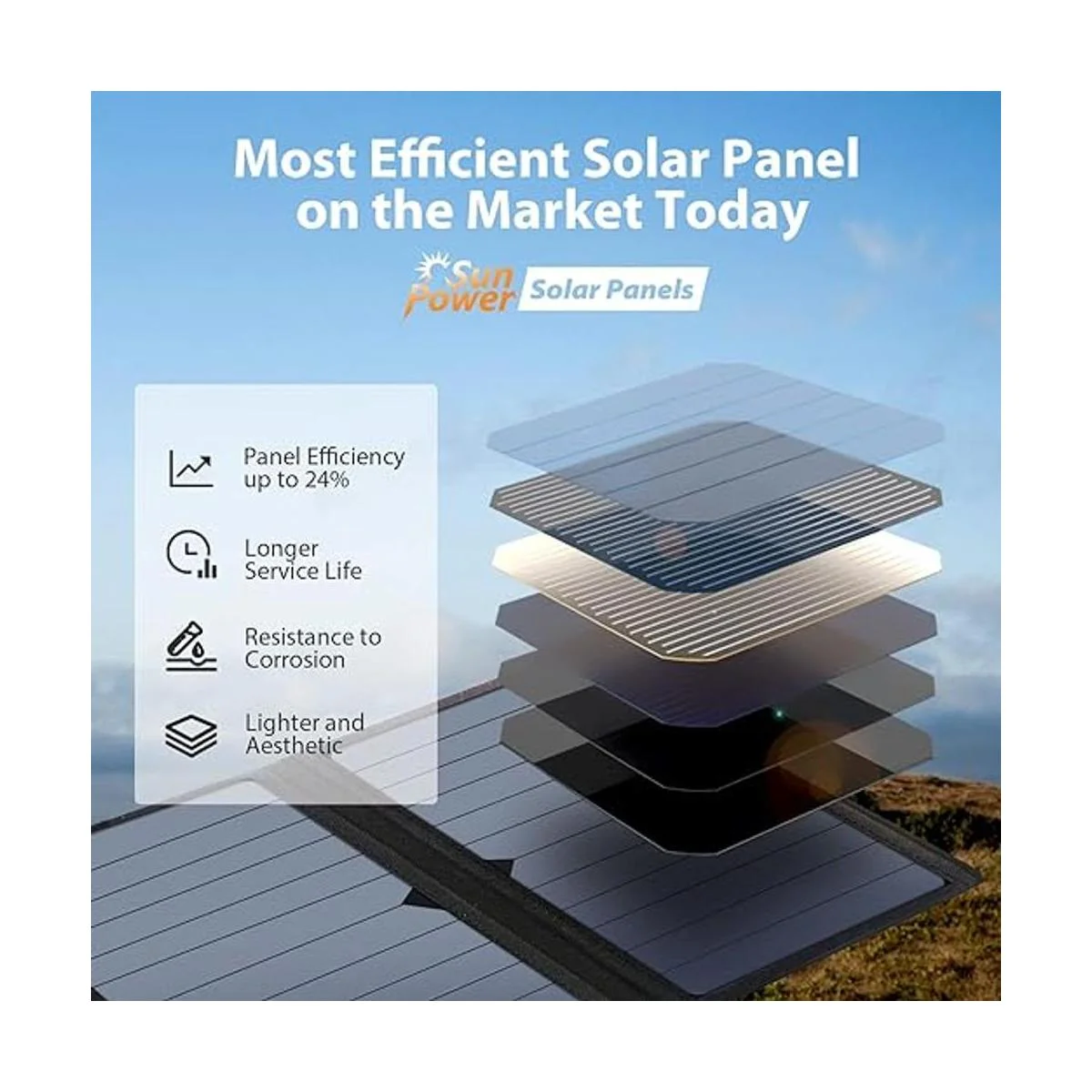 Mayor conversión solar: el panel solar SunPower altamente eficiente convierte hasta el 24 de la energía solar en energía libre con suficiente luz solar, que es el panel más duradero en la actualidad, soporta elementos y desgaste mejor que los paneles convencionales. Esta superficie especial de polímero PET protege el panel solar de la lluvia ocasional o la niebla húmeda y tres puertos están cubiertos con cubierta de goma para protegerlos del polvo o daños por agua.
