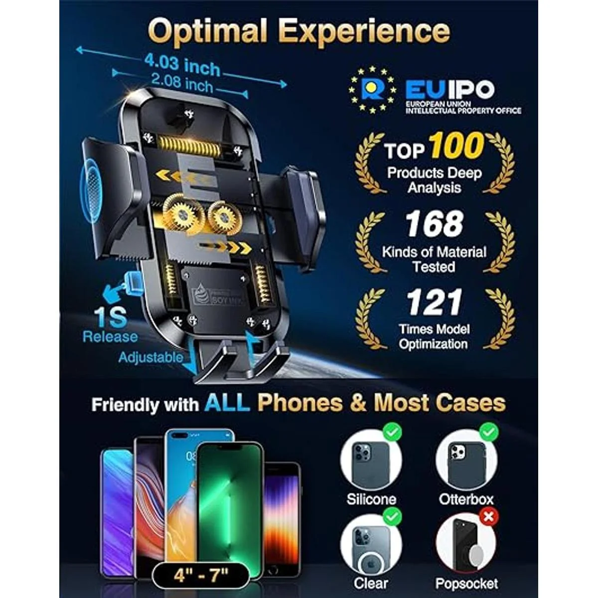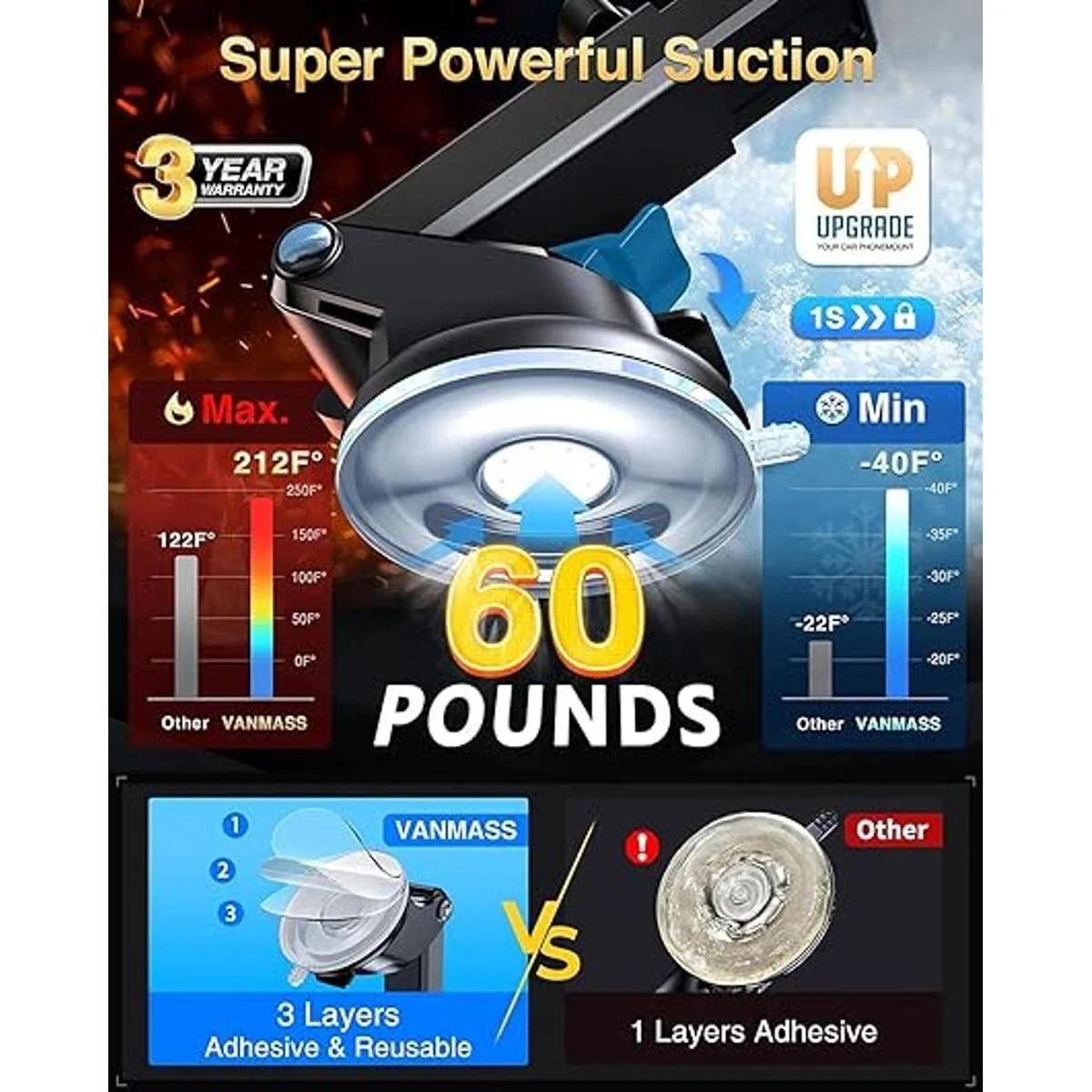 Actualizado Soporte para teléfono de automóvil VANMASS Fuerte succión y resistencia militar Soporte para teléfono celular para salpicadero de automóvil, ventilación de aire para parabrisas de automóvil, soporte manos libres compatible con iPhone 14, 13, 12, 11 Pro XS Max 8 Samsung