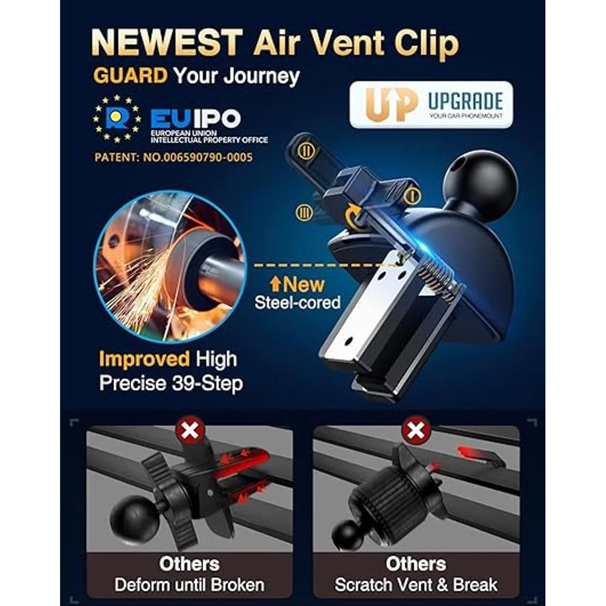 Múltiples ventajas originales, máxima protección para teléfono y coche: el soporte para teléfono de coche VANMASS es el primero en la industria que adapta el material de aviación PTFE no plástico barato, por lo que podría funcionar bien en entornos extremadamente agresivos. Además, ofrecemos una potencia de succión 3 veces más que otras ventosas que pueden mantener el teléfono estable incluso en una carretera con baches. Además, el clip de ventilación original de nanoacero se agarra firmemente a la ventilación de aire sin agitar