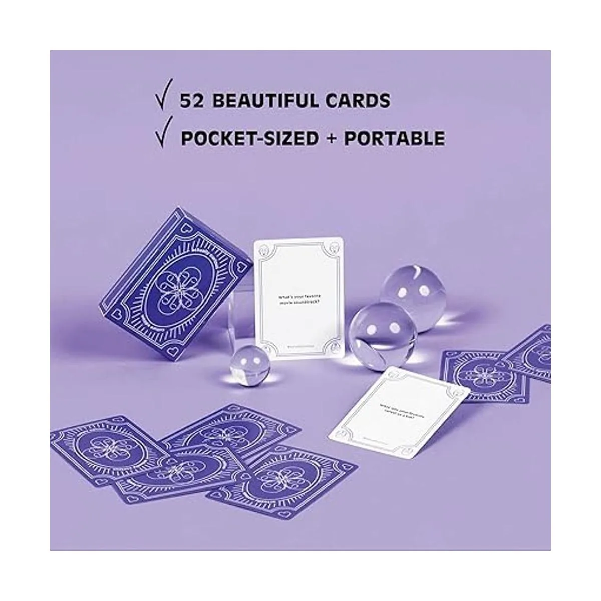 Hermosas tarjetas: este paquete de tarjetas de pensamiento crítico tiene 52 piezas de color morado, para romper el hielo en cualquier fiesta