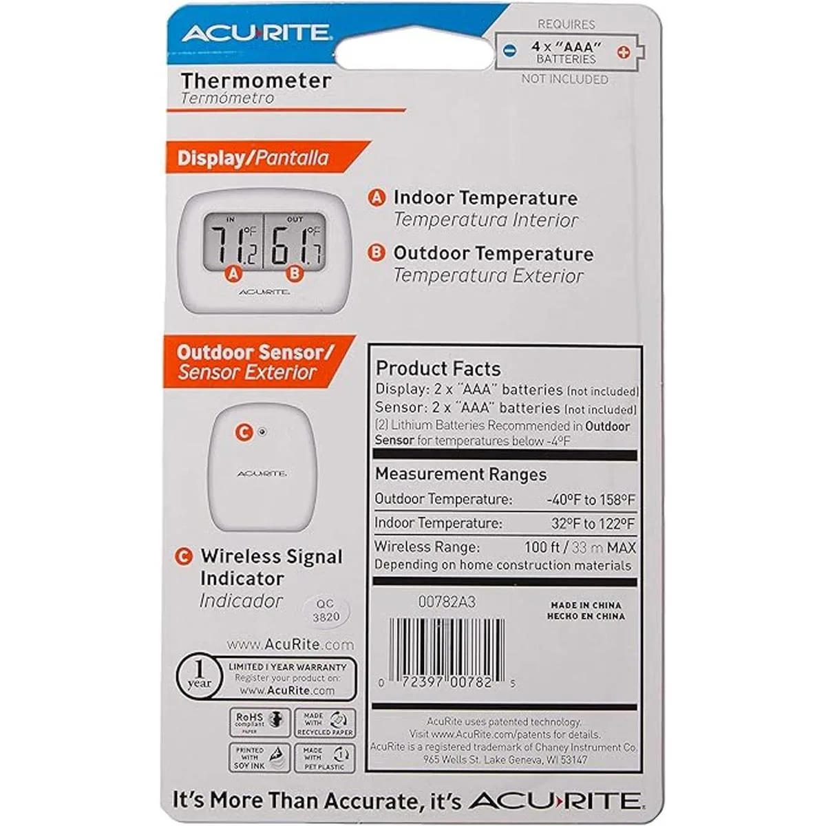 AcuRite 00782A2 Termómetro inalámbrico para interiores y exteriores, temperatura, blanco