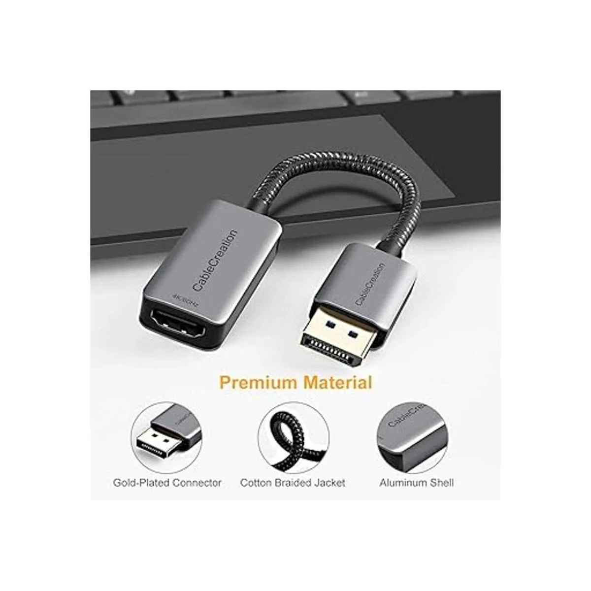 Adaptador activo DP a HDMI HDR 4K 60Hz 2K 144Hz 1080P 144Hz, CableCreation trenzado DisplayPort 1.4 a HDMI 4K macho a hembra, compatible con múltiples pantallas Eyefinity, aluminio
