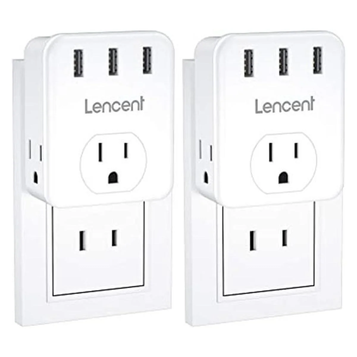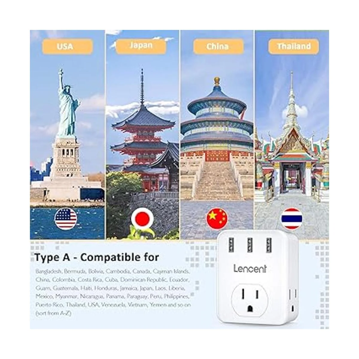 Adaptador de 3 puntas a 2 puntas, 2 unidades, LENCENT 3 salidas extensor con 3 puertos USB, cargador de pared, divisor de extensión de enchufe múltiple, adaptador de viaje para EE.UU. a Japón Filipinas tipo A, aprobado por crucero