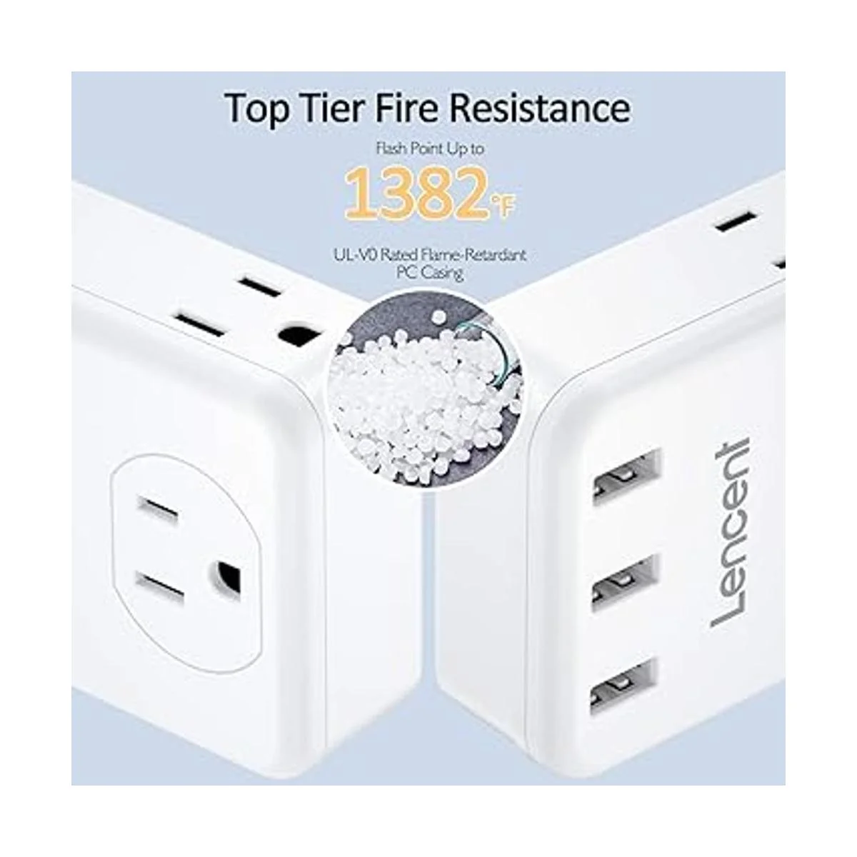 Adecuado para cualquier ocasión El adaptador de salida LENCENT de 2 a 3 clavijas está hecho de material ignífugo de 1382 y certificado por CE FCC puede mejorar la durabilidad y la seguridad. Fiable para cualquier lugar interior, especialmente para el dormitorio, baño y hotel.