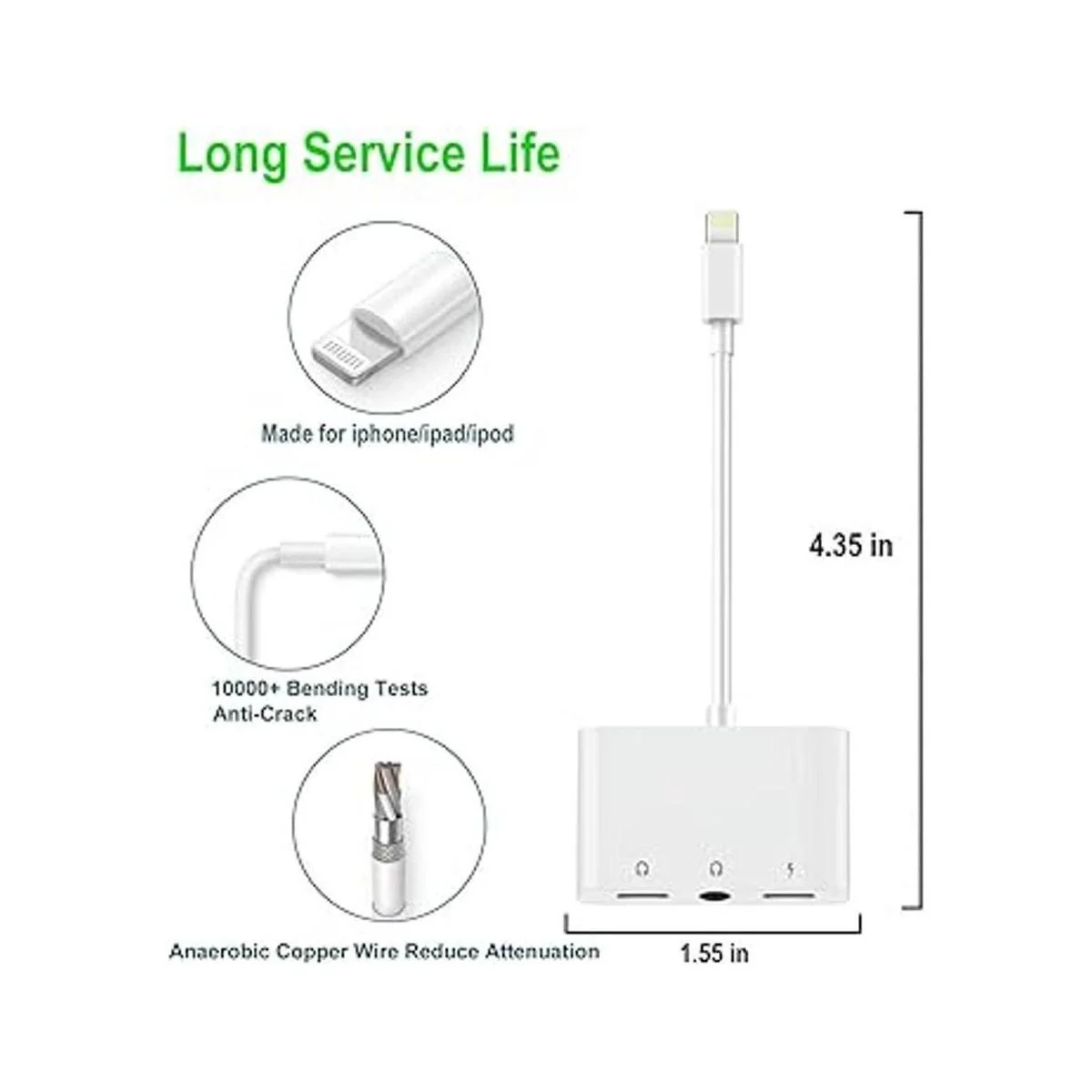 Adaptador de auriculares 3 en 1 para iPhone, adaptador Lightning a conector de auriculares de 0.138 in, adaptador de audio Lightning y adaptador de carga, divisor de cable compatible con iPhone 14, 13, 12, 11 XS XR X 8, 7 iPad