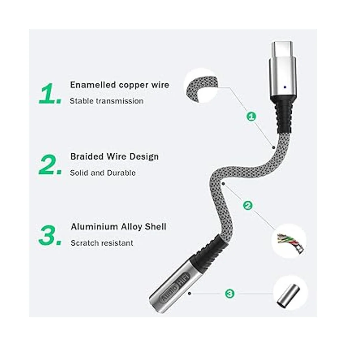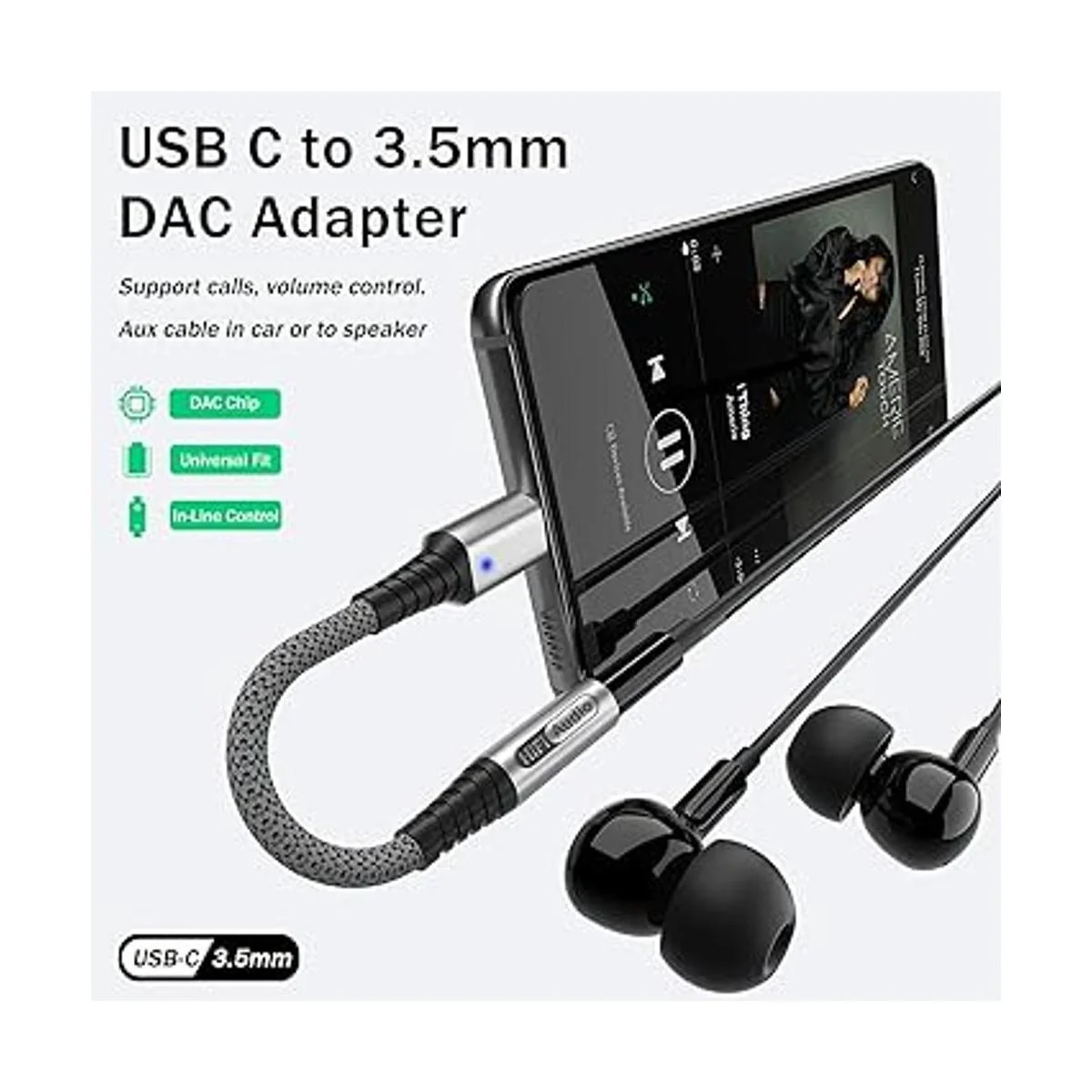 Cable USB C multifunción: este compacto conector USB C a audio te permite escuchar música y responder llamadas telefónicas con auriculares de 0.138 in, así como soporta control por cable, como vol/vol, función de reproducción/pausa, saltar canciones/canción de pista anterior, plug and play, muy conveniente para usar en auriculares con cable, altavoces/cable de audio del coche.