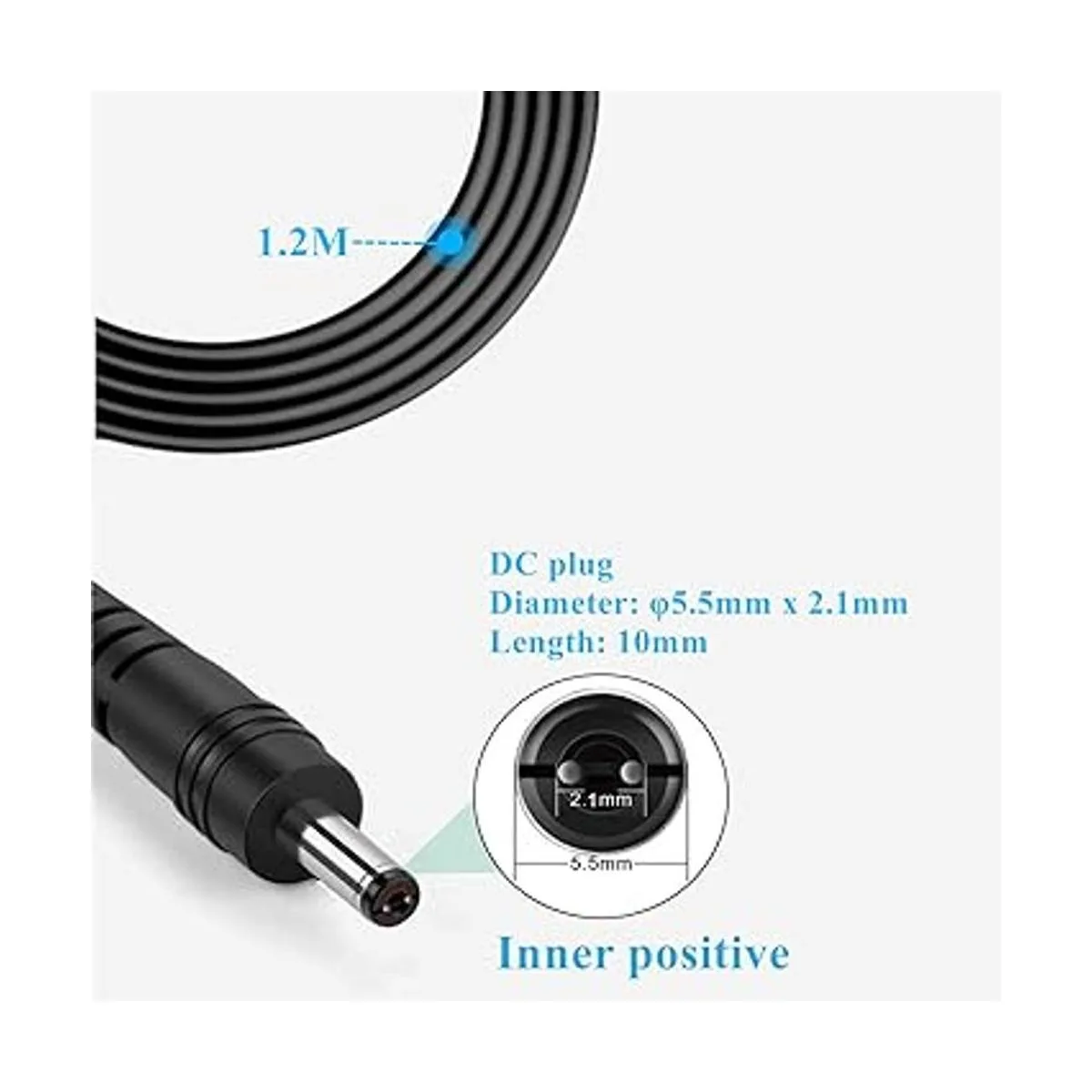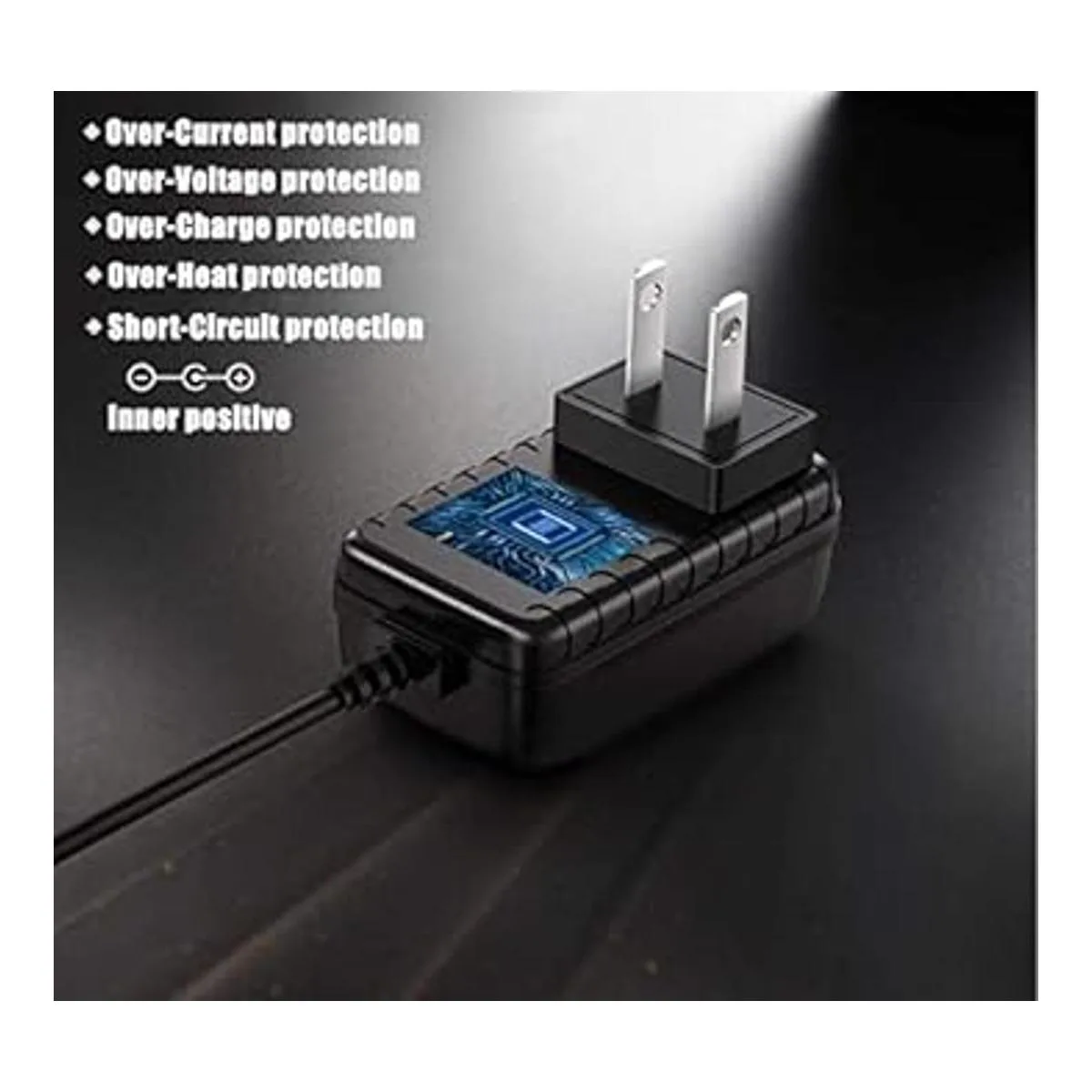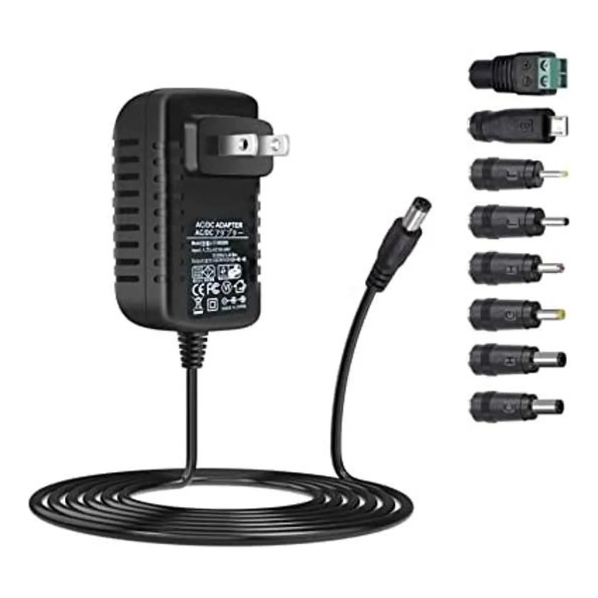 Especificaciones del producto Entrada: CA 100V240V 50/60Hz. Salida: DC9V2A Potencia máxima 18W DC Tamaño del enchufe 0.217 in x 0.083 in Peso neto: alrededor de 0.2 lbs Polaridad: interior positivo/exterior negativo.