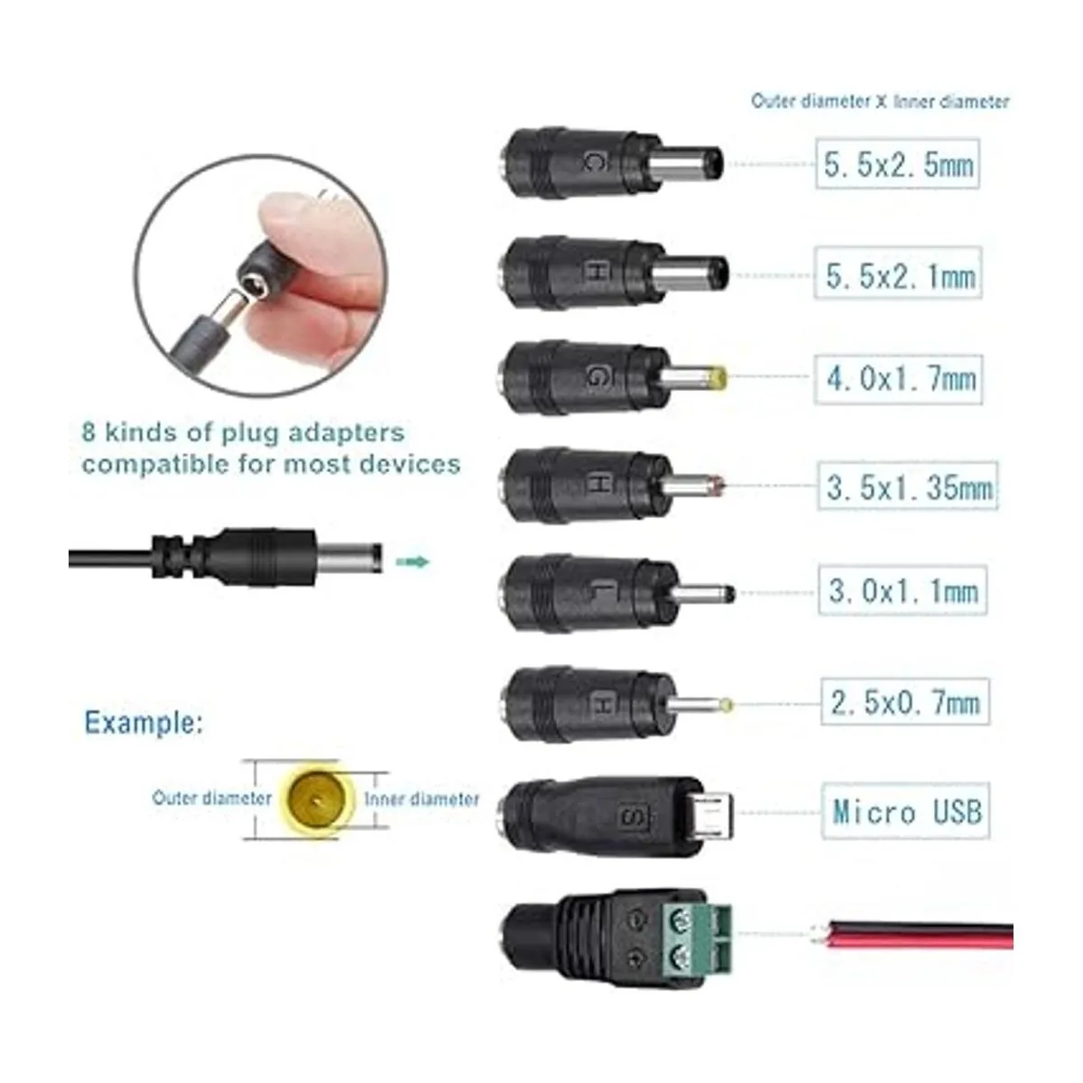 Dispositivo compatible Aplicación universal para tira de luz LED, enrutador inalámbrico, gatos ADSL, concentrador, interruptores, cámaras de seguridad, fuente de alimentación de audio/video, etc. y otros dispositivos alimentados por fuente de alimentación DC9V 02A.