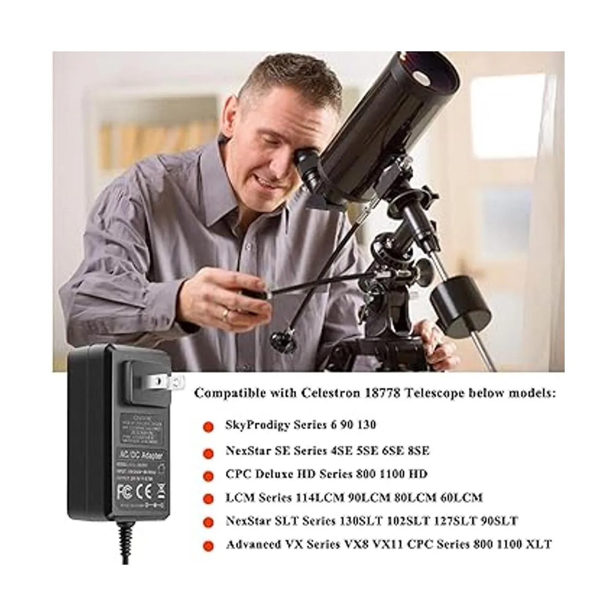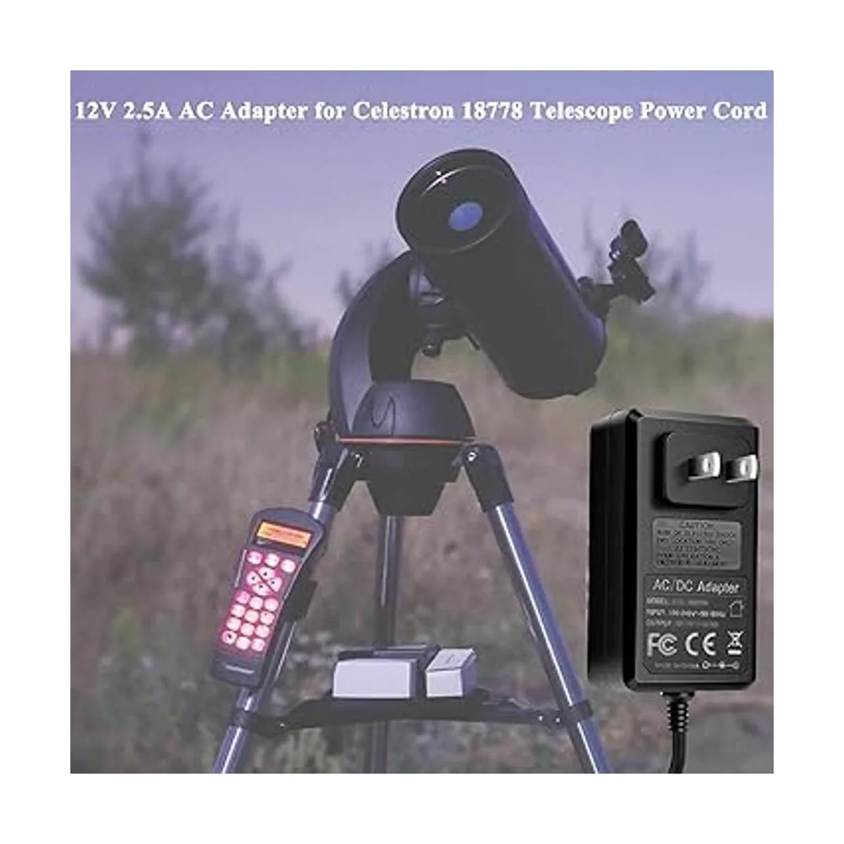 Adaptador de CA de 12 V 2,5 A para cable de alimentación de telescopio Celestron 18778, compatible con NexStar 4SE 5SE 6SE 8SE 130SLT 127SLT, LCM 114LCM 90LCM, CPC 800 1100 HD fuente de alimentación 10 pies de largo