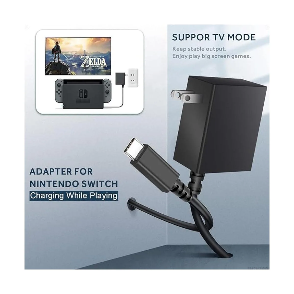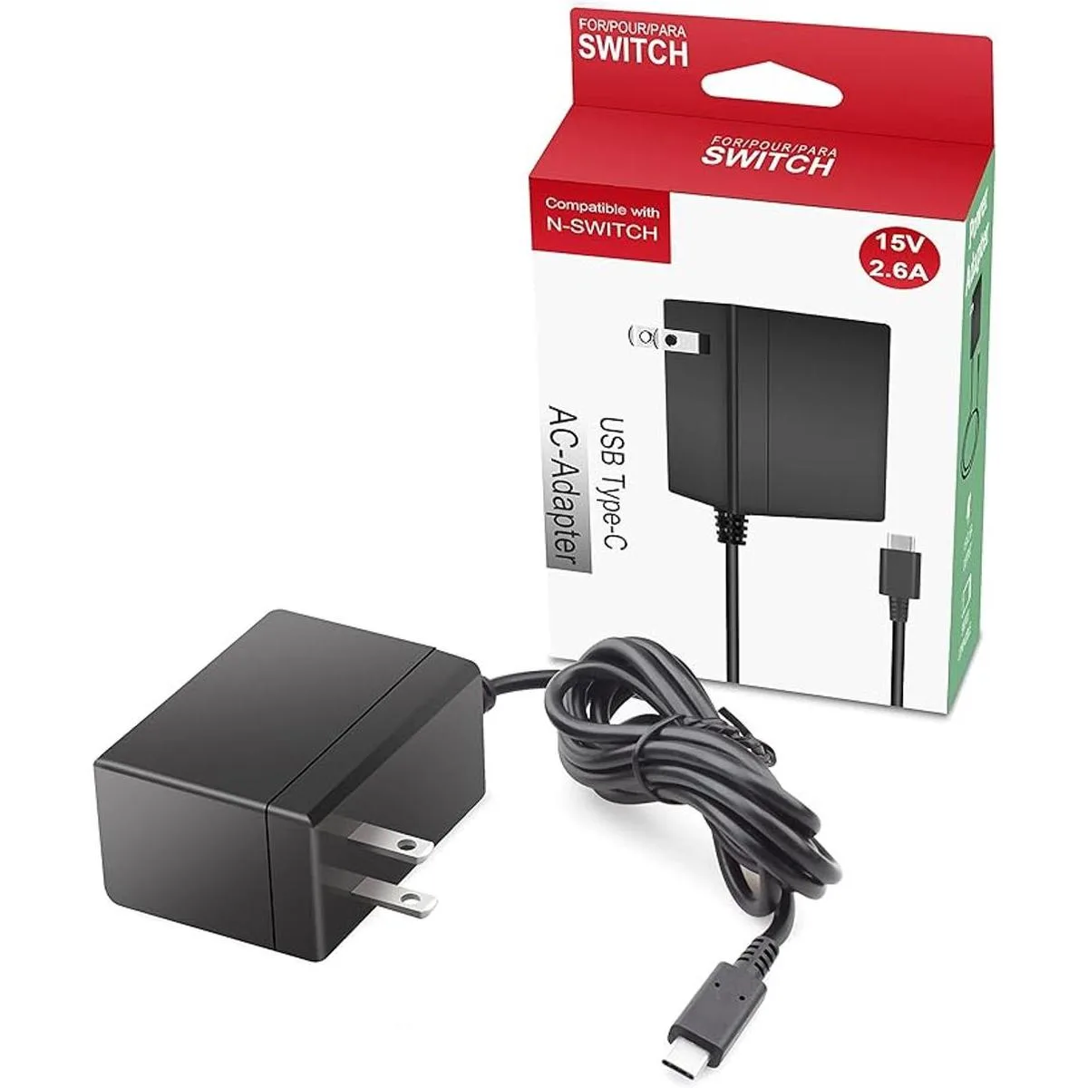 Adaptador de CA de 15 V 2.6 A de repuesto para interruptor Nintendo Switch Lite de consola de juegos, interruptor de muelle con controlador Pro, cargador de pared con cable tipo C de 5 pies compatible con modo TV estación de acoplamiento