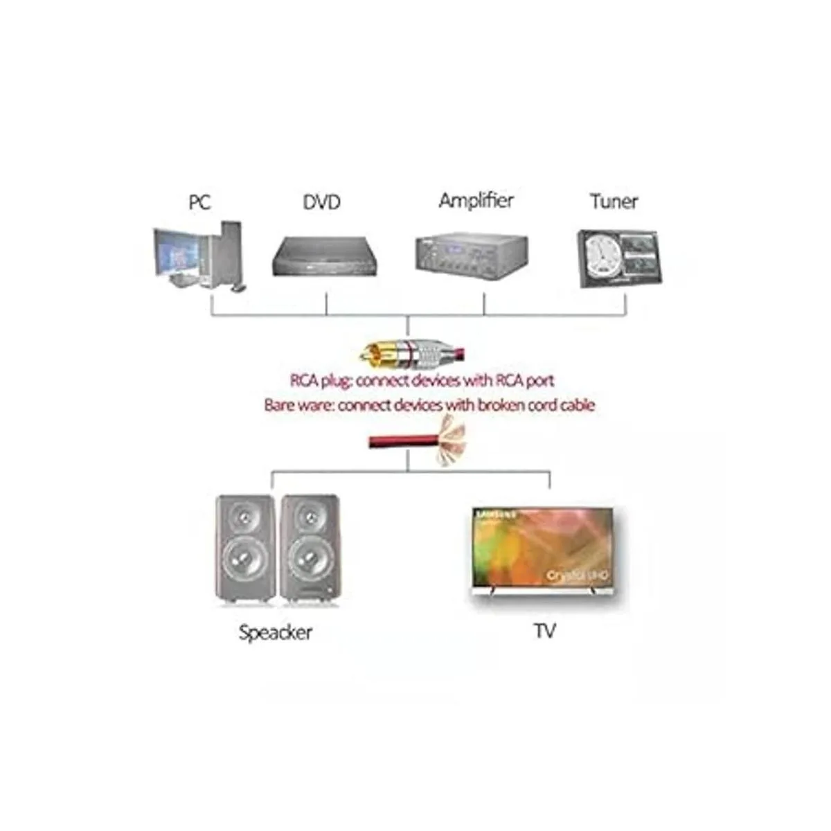 Adaptador de cable RCA a altavoz, cables de cable sin conexión para altavoces RCA adaptador, cable de reparación para altavoces, amplificador, audio, video, receptores AV, bricolaje, 2 M/6.6 pies