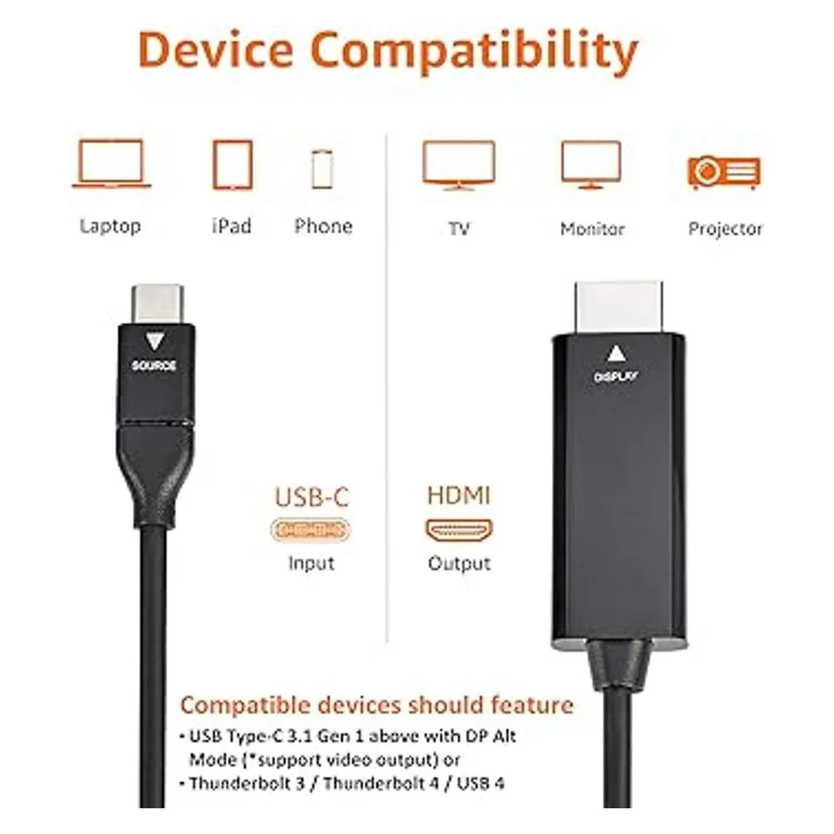 Adaptador de cable USBC a HDMI compatible con Thunderbolt 3 4K a 30Hz 6 pies