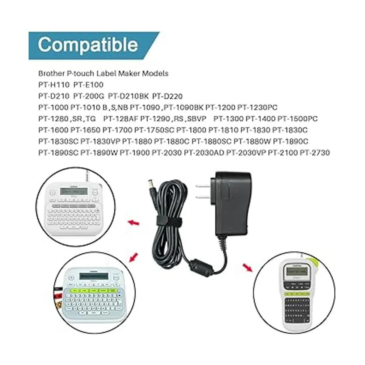 Adaptador de corriente alterna CC para Brother PTouch PTD210 PTD 210 PTD220 PTD200VP PTH110, cargador de fuente de alimentación con certificación UL para Brother AD24 AD24ES AD20 AD30 cable largo de 8.2 pies