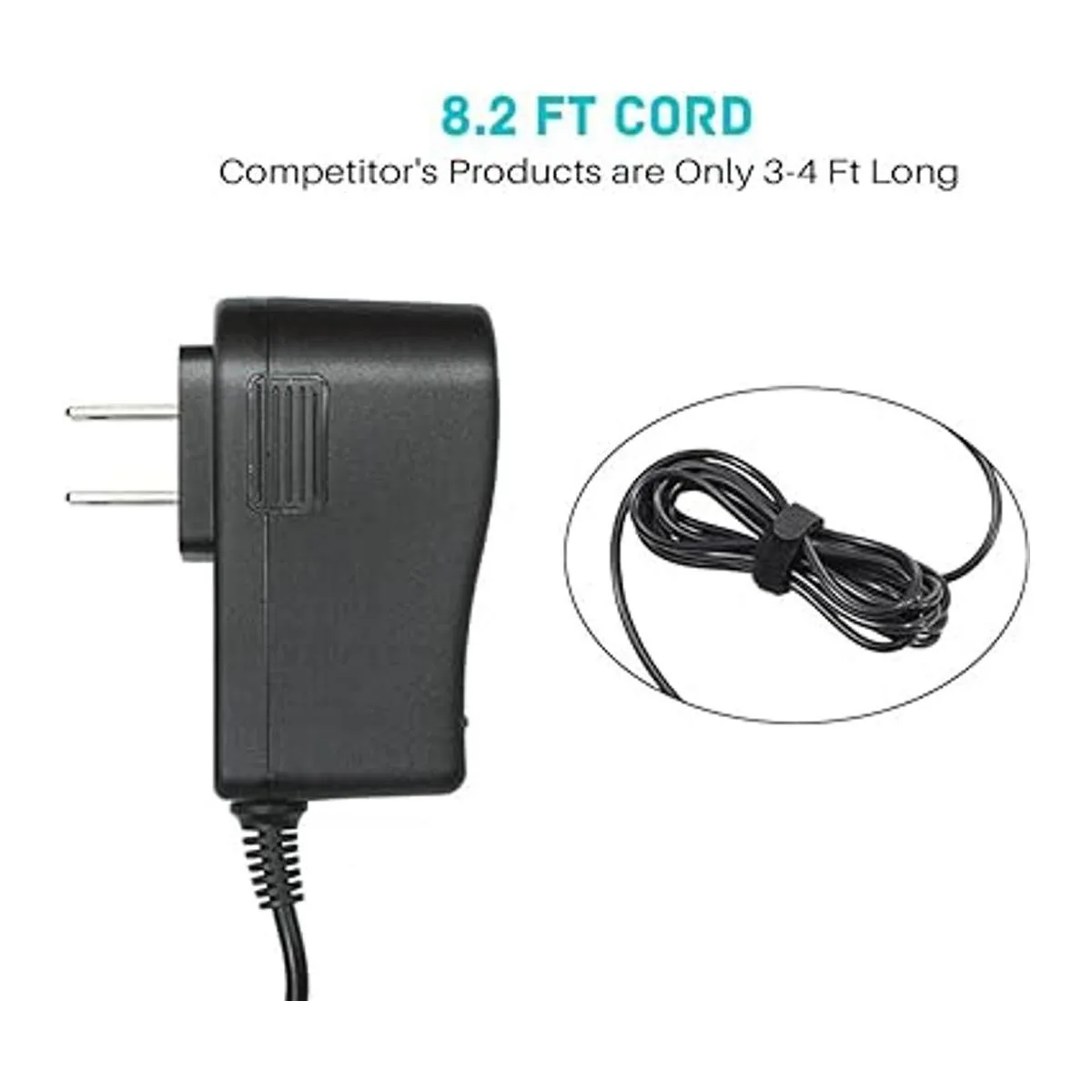 Especificaciones de potencia: cable de 8.2 pies de largo. Rango de voltaje de entrada: 100240 V. Salida: 9 V 1.6 A misma salida que el cargador original